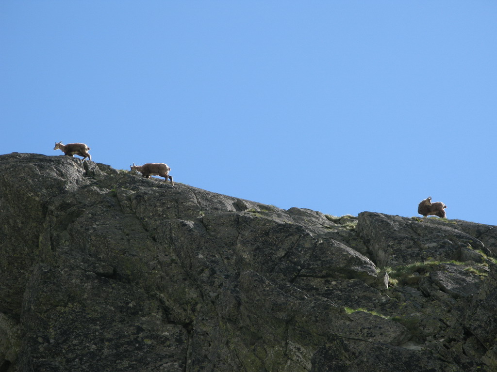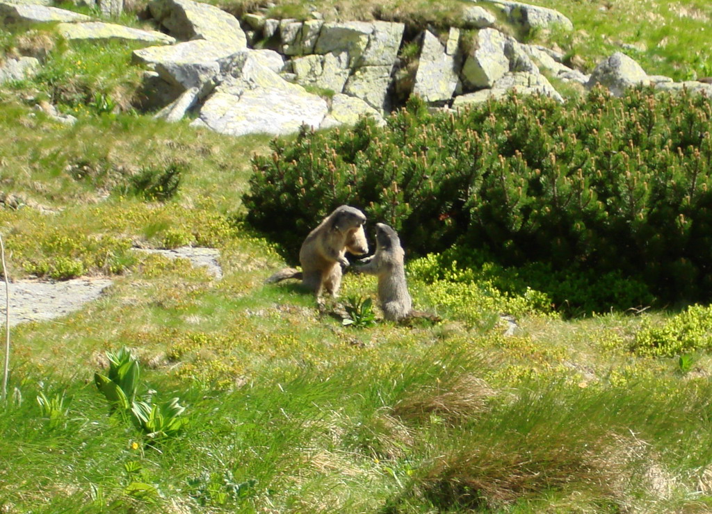 Pod Večným dažďom krátky oddych. Na Velickej poľane pozorujeme vyvádzanie svišťov - pár metrov od nás sa predvádzajú v hravom zápasení, jeden priamo pri chodníku zalieza pod kameň až keď ho míňame. O chvíľu môžme zasa pozorovať ďalšieho známeho predstaviteľa tatranskej fauny - kamzíky.