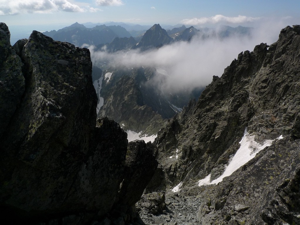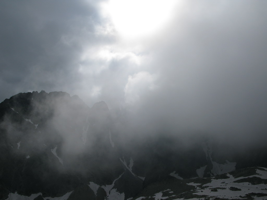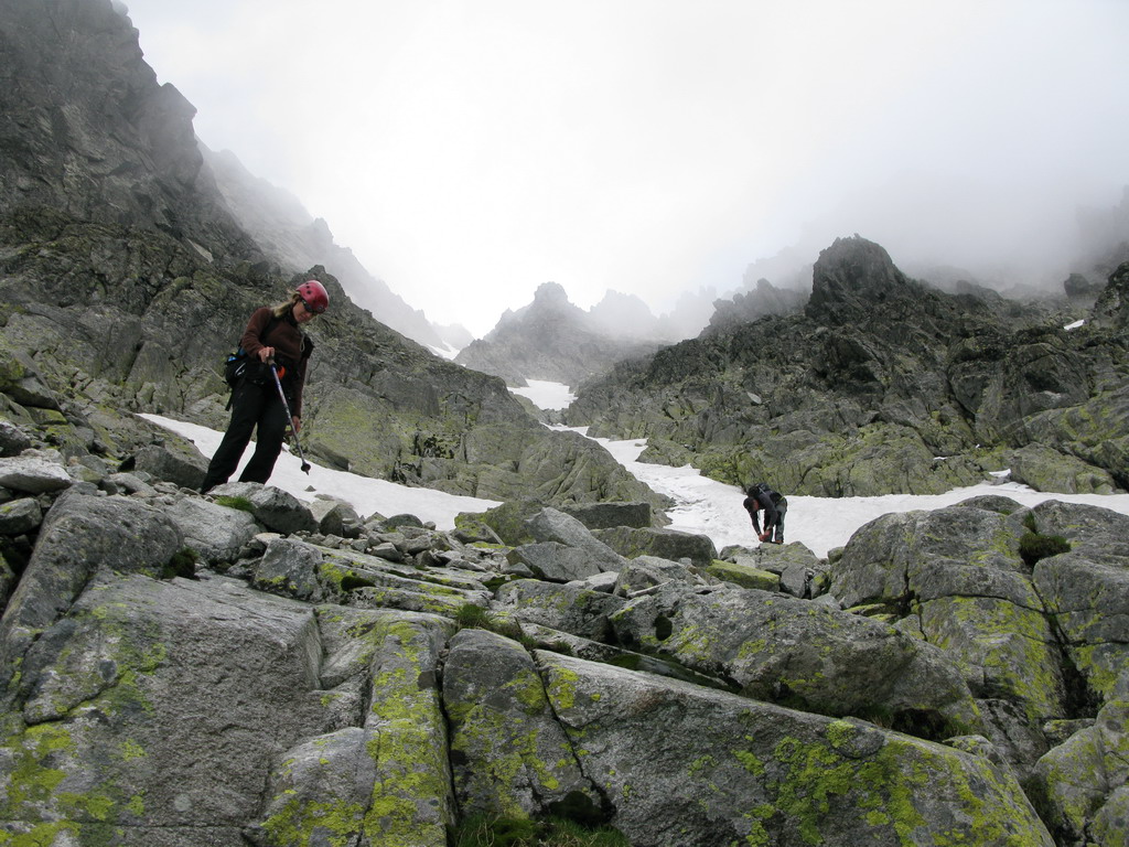 Radšej traverzneme do vedľajšieho žliabku a po suchých kameňoch cupotáme dolu. Hore sa začína zaťahovať, cez Batizovskú dolinu premávajú chuchvalce hmly. Predpoveď počasia vychádza do bodky. V Batizovskej próbe si zostup spríjemníme zlanením a záver do dolinky aj šmýkaním po snehu. Už len v drobnom mrholení zbehnúť k plesu, chvíľku po magistrále a dole na Tatranskú Polianku. Hodinky hlásia 21:45. Taká klasická "poldenná" vetroplašia túra.