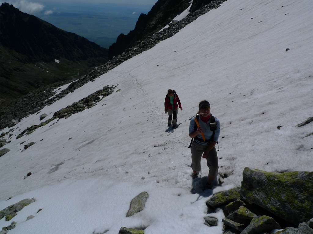 Vychytali sme jeden z troch slenčných júnových dní, takže bolo vidno od Malej Fatry až po ďaleký východ. Sneh ešte viac umocňoval zážitok z Tatier naokolo, zvrchu sú všetky plesá tak krásne modré a ľudia len malé mravce šplhajúce sa na Poľský hrebeň. Z takéhoto zážitku človek žije ešte týždeň ako v akomsi tranže. A ak nie, svalovica smerom dole po schodoch pripomenie, že dakde bol!