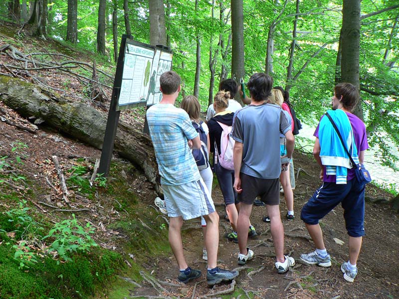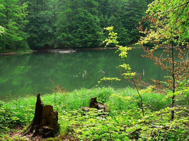 Okruh vedie najprv po asfaltke okolo spomínaného kaštielika, o chvíľu ale odbočí na chodník popri brehu. Míňa dve väčšie chaty, na stránke jednej z nich je pekné motto: „Spoznajte ticho. Doprajte si oddych a zábavu“. A v ponuke aktivít štvorkolky a motokáry :-) Chodník po západnom brehu vedie „obyčajným“ listnatým lesom, na východnom brehu si človek vychutná aj atmosféru pralesa. Často preskakuje prítoky, ktorých je zo osem a nie všetky sú stále. Ale asi na všetkých sú malé prehrádzky, aby do jazera tieklo čo najmenej plavenín, ktoré ho zanášajú. Morské oko je chránené od r.1984, aj keď snahy boli už od 50. rokov. Dnes je na výmere 108 hektárov vyhlásená národná prírodná rezervácia a piaty - najprísnejší stupeň ochrany. Čiže na kúpanie zabudnite, v horúcich dňoch môžete tým rybám pod hrádzou akurát závidieť :-)