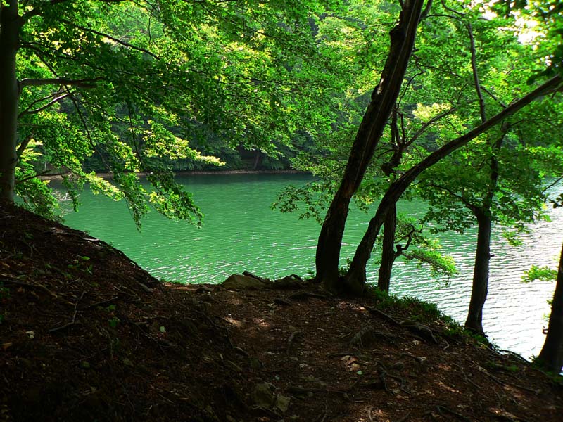 Ako k nemu? Z hrebeňovej červenej sa dá dole zbehnúť ani nie za hodinu z viacerých miest. Hrebeň Vihorlatu totiž obchádza Morské oko veľkým oblúkom zo západu, severu aj z východu, pretože jazero leží vlastne na dne bývalého sopečného krátera. Len na juh si Okna prerezala dolinu a práve tou vedie z Remetských Hámrov asfaltka. Tade je to nudnejšie, asi 9km z dediny na parkovisko Krivec. Z neho je to k hrádzi už len asi 15 minút. Do r.1971 viedla dolinou úzkorozchodná železnica (a predtým jej drevená predchodkyňa) na zvážanie dreva a vyvážanie pánov do kaštielika na brehu. Na hornom konci dediny ešte stojí starý rušeň.