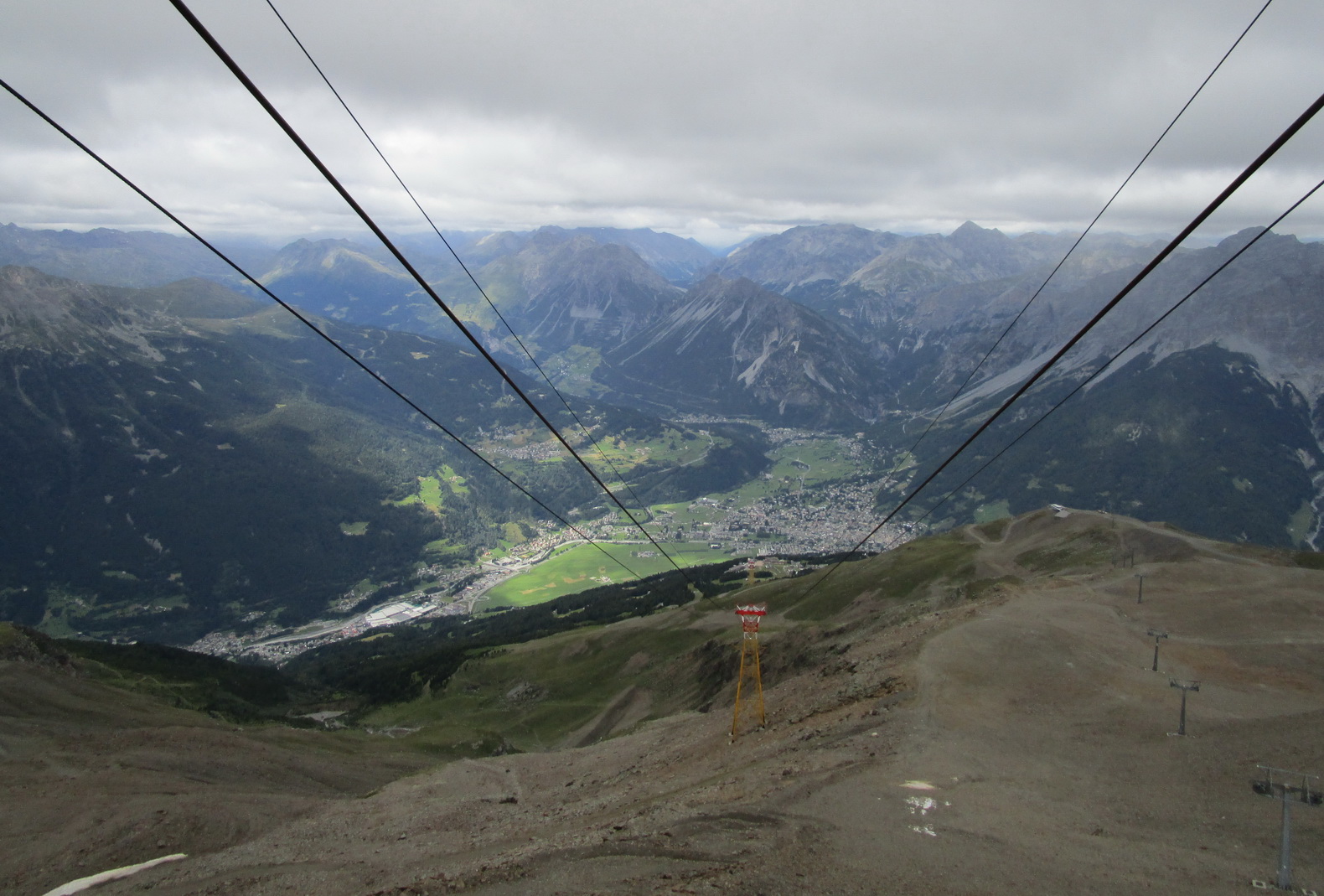 Po obedňajšej zmrzlinovej pauze sa uličkami presúvame ku stanici lanovky Bormio 3000. Máme síce v nohách veľkolepý zjazd z passo Zebrú a výšlap od chaty Pizzini ale vďaka vývozu na chatu sa náš deň ešte nekončí. Kupujeme lístky na lanovku. Cena je nižšia ako na Skalnaté pleso, prevýšenie vyššie, bicykel zdarma...V polovici prestupujeme do menšej lanovky. Sme sami, frírajderi už sú poobede unavení.