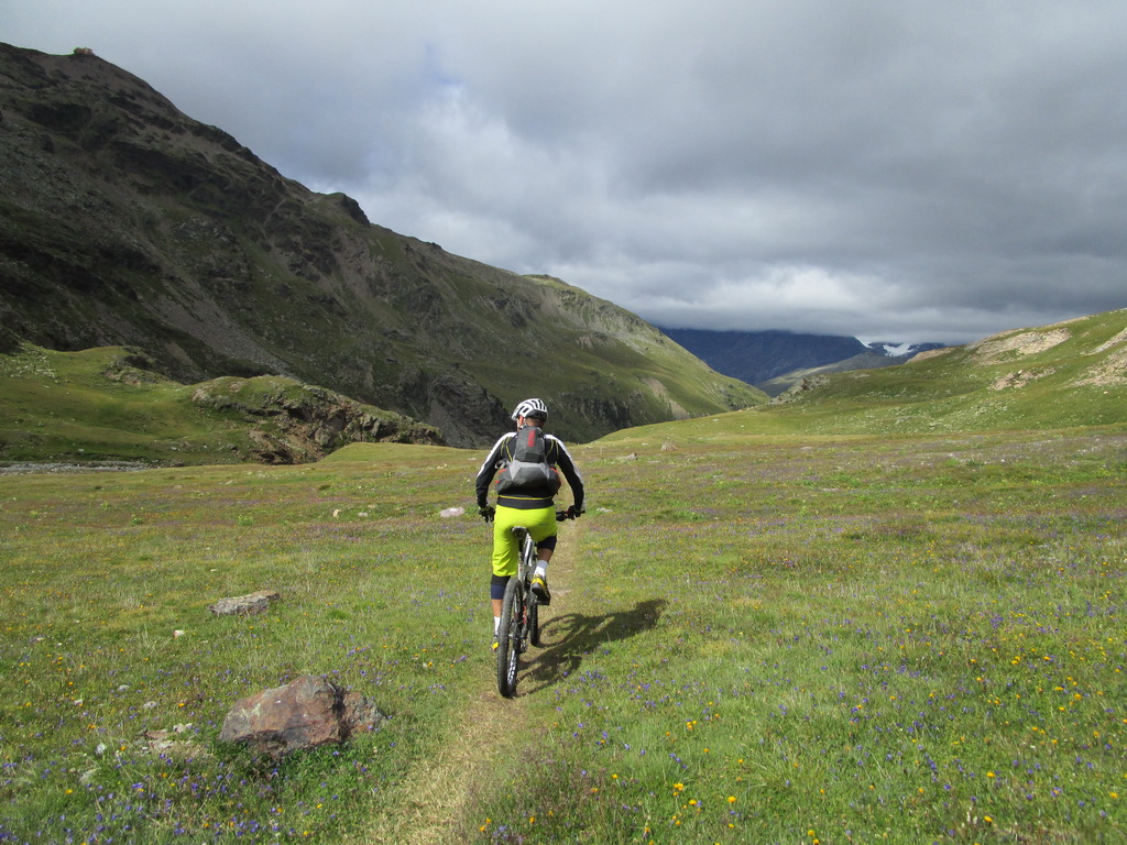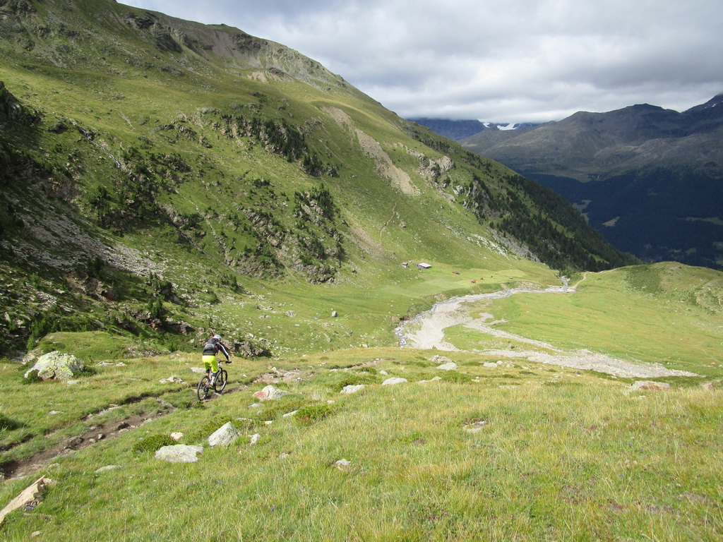 Na vrcholovej stanici je o poznanie chladnejšie ako dole. Pred dlhým zjazdom ktorý na nás čaká si ešte dáme kávičku v prázdnej reštaurácii a ideme nato. Naobliekame na seba všetko čo máme a začíname veľkolepý zjazd. Postupne sa dostávame cez pásmo kameňov, alpínskych lúk, kosovky, rododendrónov, lesíka červených smrekov až do St. Cateriny Valfurva ktorá už je ponorená do ihličnatých lesov. Jeden z najlepších zjazdov aké som kedy šiel. Po ceste niekoľko kratších stúpaní, dlhé traverzy. Nestretli sme už nikoho len zopár koní voľne sa pasúcich na lúkach. K našemu autu prichádzame ešte včas nato aby sme sa večer presunuli cez Livigno do Val Rosegu. Samozrejme parádny deň zakončíme pizzou po ceste v Livignu. Prvú polovicu dňa - prechod a zjazd z passo Zebrú nájdete v odkliku pod článkom.