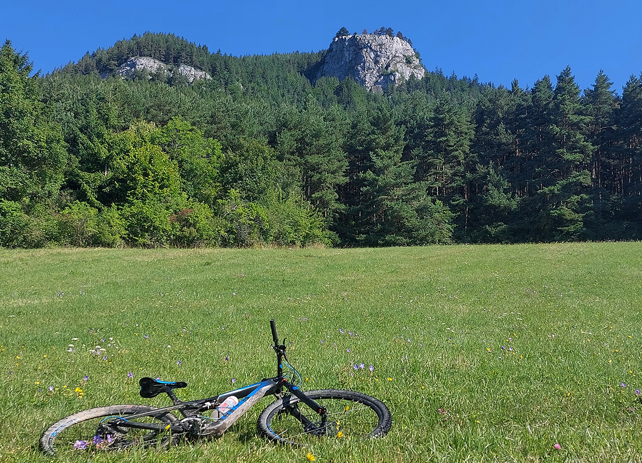 Popod Liptovský hrad (najvyššie položený na Slovensku, keby niečo) je to smerom na Liptovskú Annu jasné, ale strméééé! A po lúkach s číhajúcimi rojmi ovadov. Hore v Sedle pod Kráľovou som sa zamotal, ako som sa im snažil ujsť a zároveň nájsť začiatok zjazdu po červenej značke, v metrovej burine. Keď som našiel ten úzky chodník, už bolo dobre, len šľahúne šľahali chvíľu z oboch strán ako besné, až po lakte. Dole popri potoku naopak široká asfalto-šotolina a odtiaľ až do konca už prevažne po cyklotrasách.