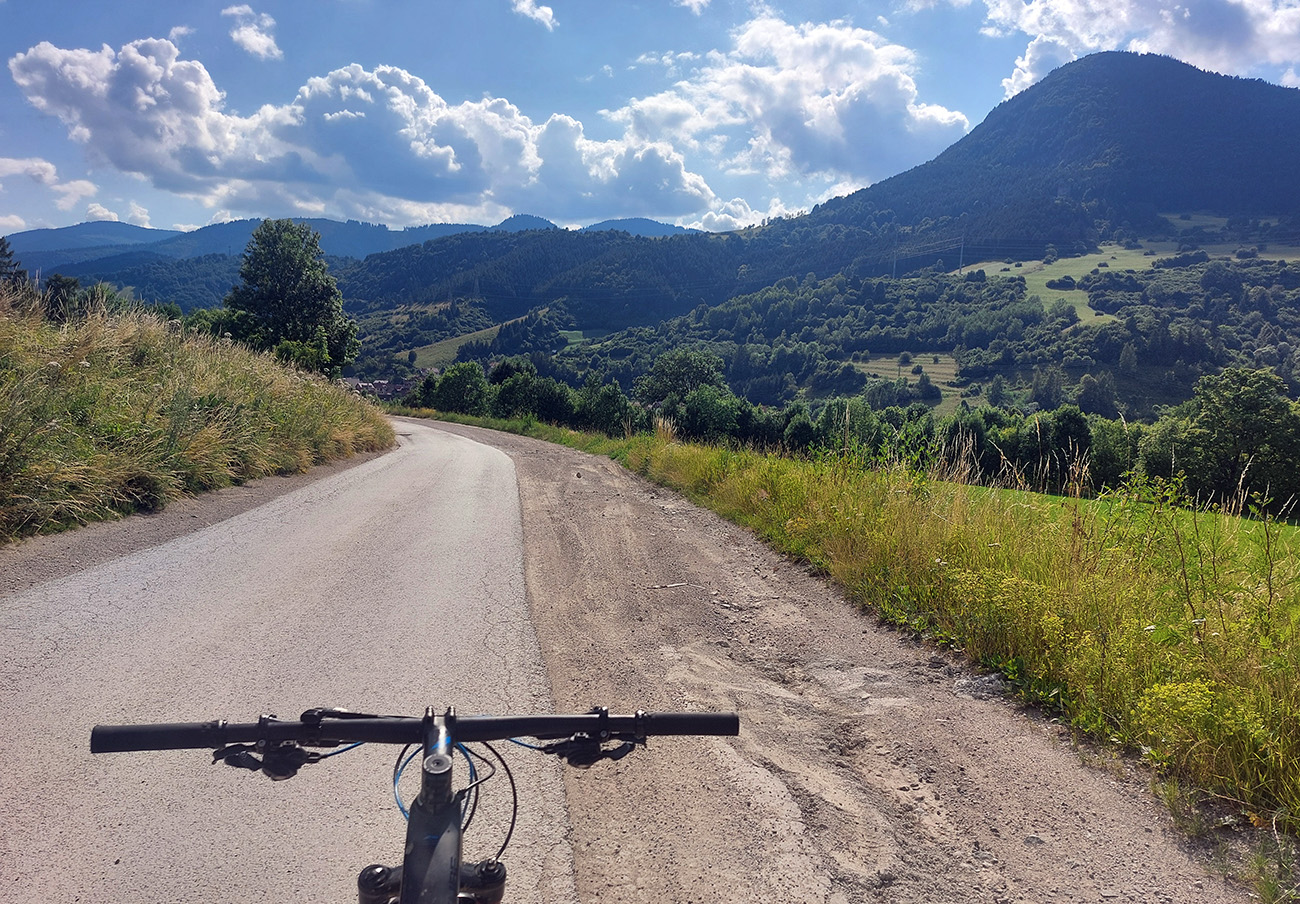 Nasledoval dlhýýýýýý zjazd väčšinou po chotárnych cestách so všetkými podkladmi, až dole k Váhu v Podturni. Cez Liptovský Ondrej a Jamník mi to vyšlo pri vyklikávaní trasy také najrozumnejšie, s minimom asfaltu, s výhľadmi a tak...