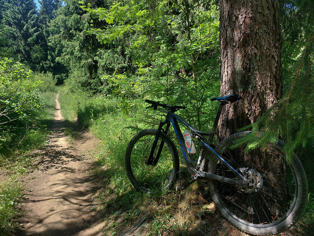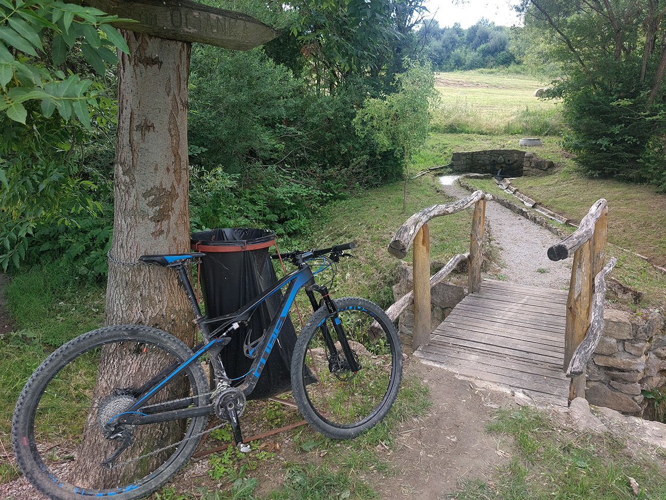 Ľupčianka je v ústí doliny už mohutnejšia, tak som pohrdol brodom, vyššie je mostík, na gpx-ku tú zachádzočku vidno. Pred Vyšným Sliačom som ochutnal miestnu minerálku – fajná je. No do bidónu som radšej netankoval, to až ďalej takú normálnu vodu, z výdatného prameňa Očianka tesne nad Štiavnicou.
