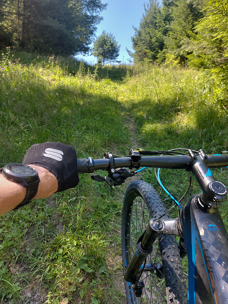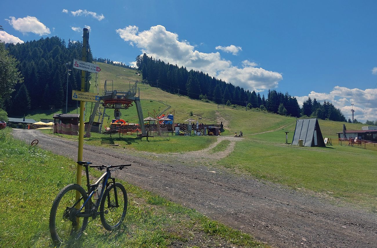 Kopček Beňovo oproti vlekom na Opalisku som obišiel z juhu – nechal som sa zlákať jasnou cestou popod vlek, ale lepšie je to zo severu - netreba v závere tlačiť a sú tam aj výhľady. Potom už popod les do Iľanova je to jednoznačné a pohodlné. Tam začala v podstate posledná etapa, kde sa mi tie „preskoky“ z ústia jednej doliny do druhej dosť zlievali, ale inak to je až do konca veľmi pekné, a už nie moc strmé jazdenie.