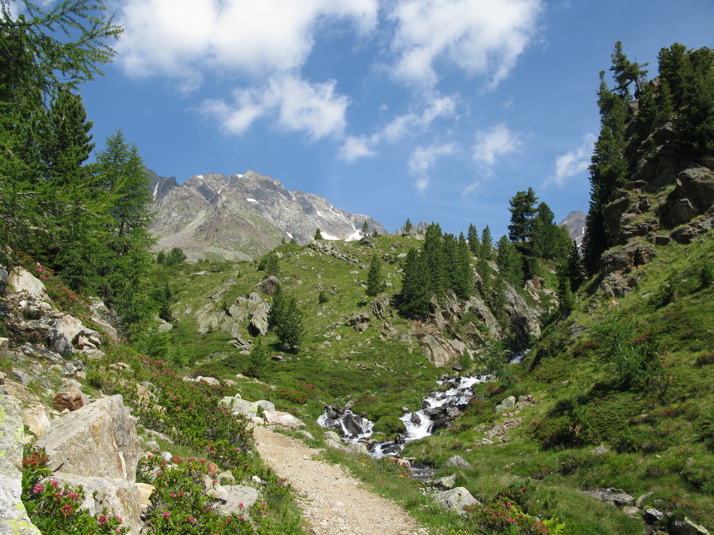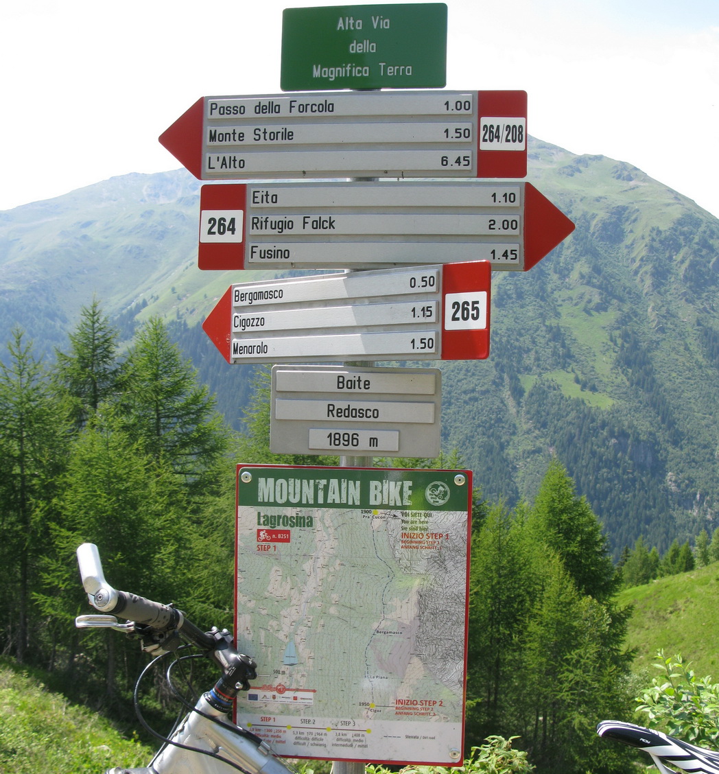 Prechádzam autom cez Passo Bernina v smere z Pontresiny do Poschiava, míňam odbočku na Livigno a zastavujem na parkovisku pod Val di Campo (1600m). Pri ceste tu je reštaurácia, hotel, zastávka autobusu, miesto sa volá Sfazú. Do údolia Val di Campo šliapem už na bajku po kvalitnej štrkovej ceste, tá sa neskôr pri chate Saoseo mení na zjazdný singltrail. Prechádzam okolo jazera Viola, a smerujem do rovnomerného sedla. Tu treba už občas aj trošku potlačiť. Za posledných pár rokov tu vyrástol zjazdný chodníček, používaný prevažne v opačnom smere.
