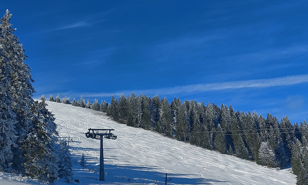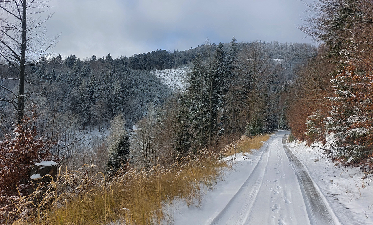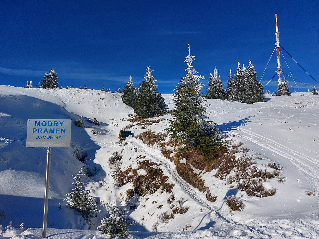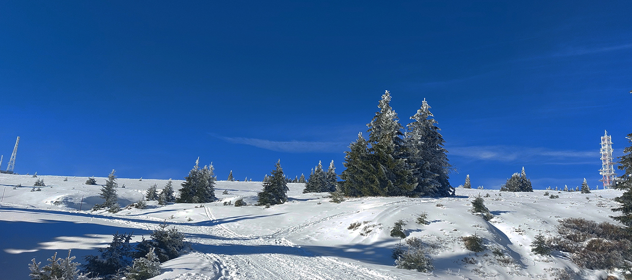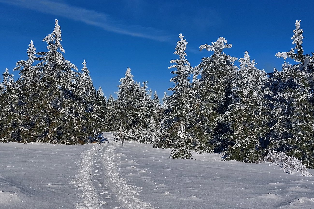 Hrebeňofka síce bez základu, ale jamy zafúkané a stopa uťapkaná na lúkach za vysielačom. Aj smerom k „Céčku“, ale tam kľučkujúc pomedzi jafury. V kosodrevinových tuneloch na Krížave sa ešte treba dobre uhýbať, ale zatiaľ málo zohýbať, popri plote vysielača je to komfortnejšie smerom k rotunde – na druhú stranu je to užšie.