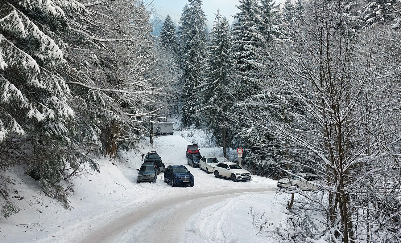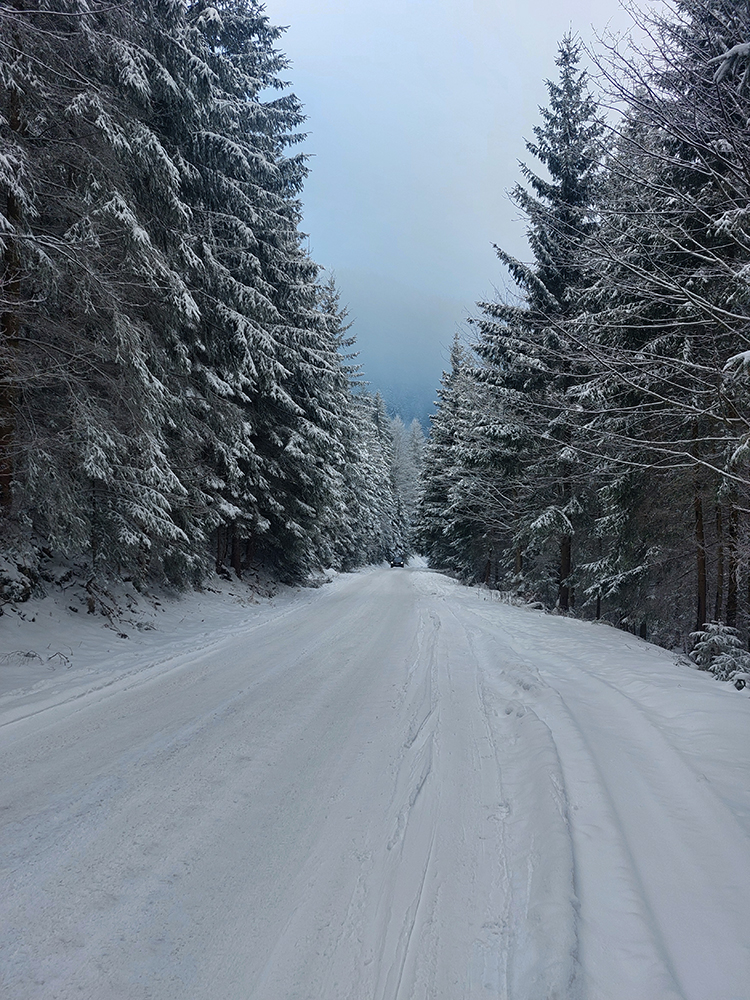 Ale dobrá správa: dá sa od parkoviska, a keby len od jedného. Od toho hore v stredisku samozrejme, ale aj od toho pod Kalužnou popri ceste k sedačke, a aj od toho nižšieho, pri Studničke - hore na hrebeň, pod Zázrivú je vraj parádna stopa vytiahnutá, aj keď sem - tam jafury isto odspodu pošteklia. Teda na chlpato sa takto dá, na pešo odkiaľ kto chce :-) Stredisko ešte neťahá, cesta preto neposypaná, takže sa dá komfortne a pre sklznice bezpečne po nej.