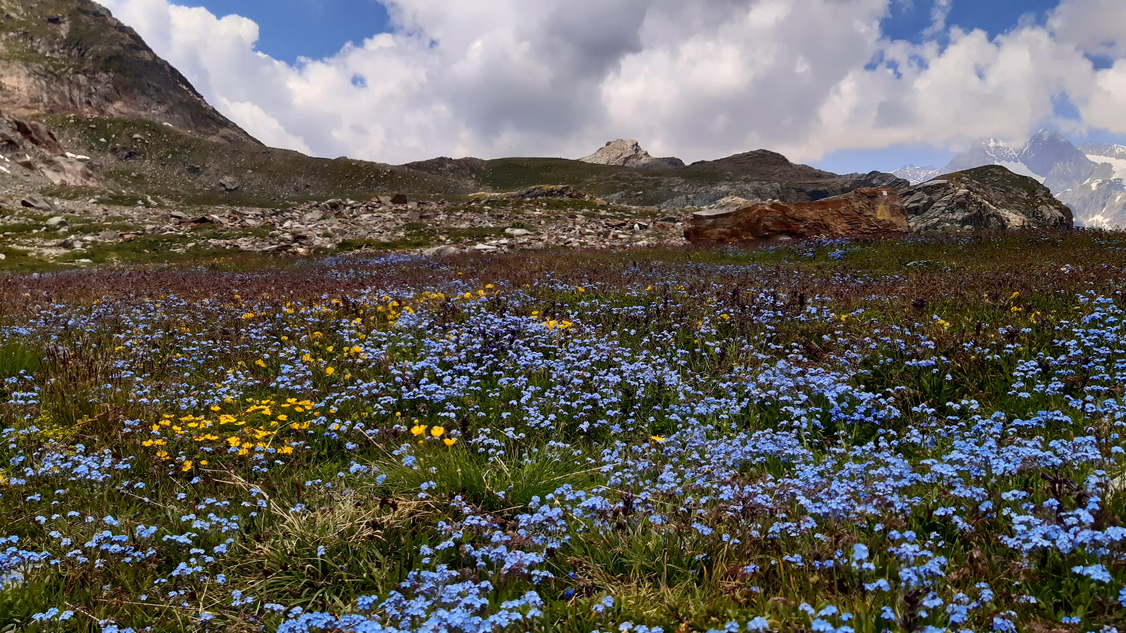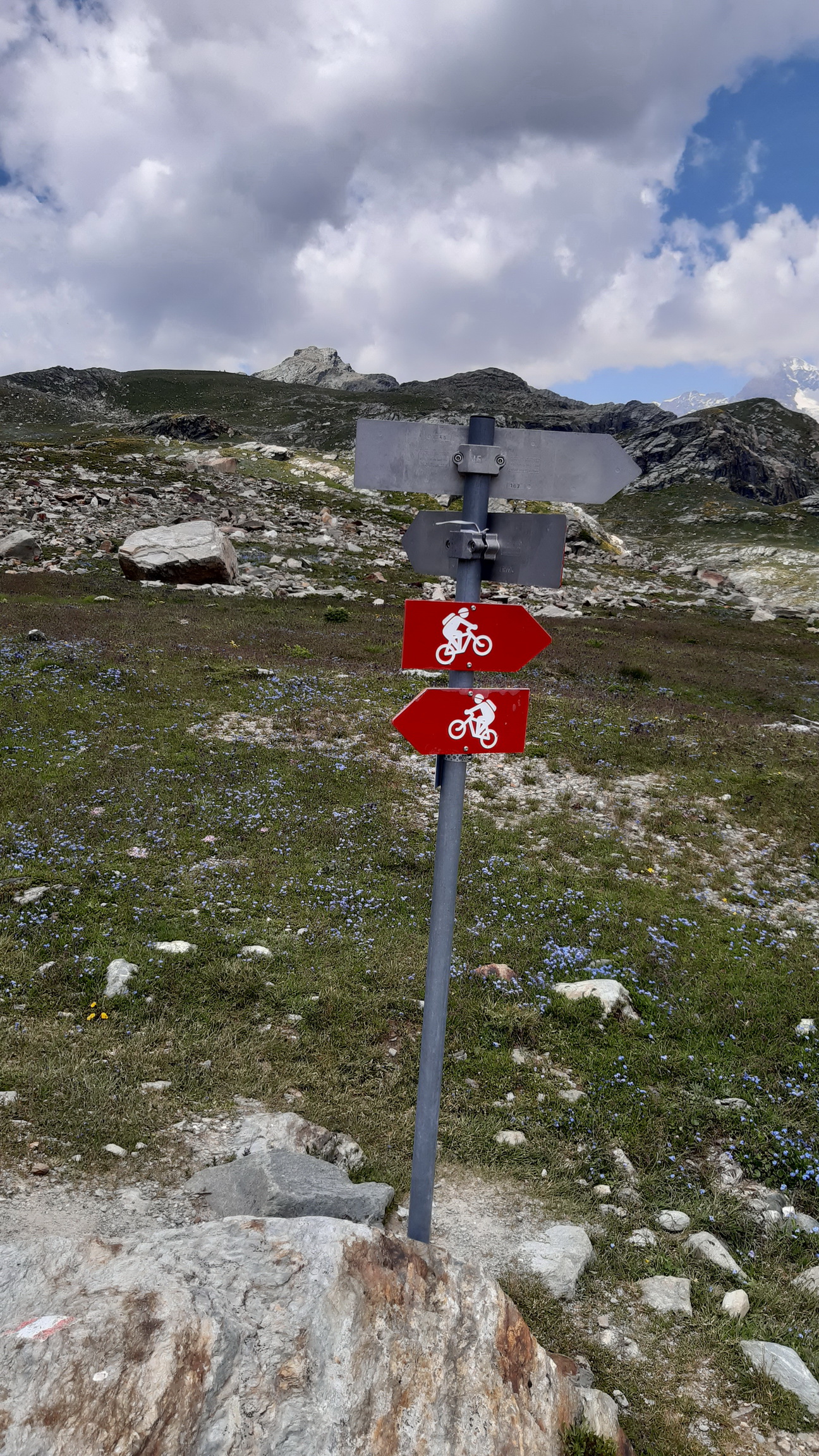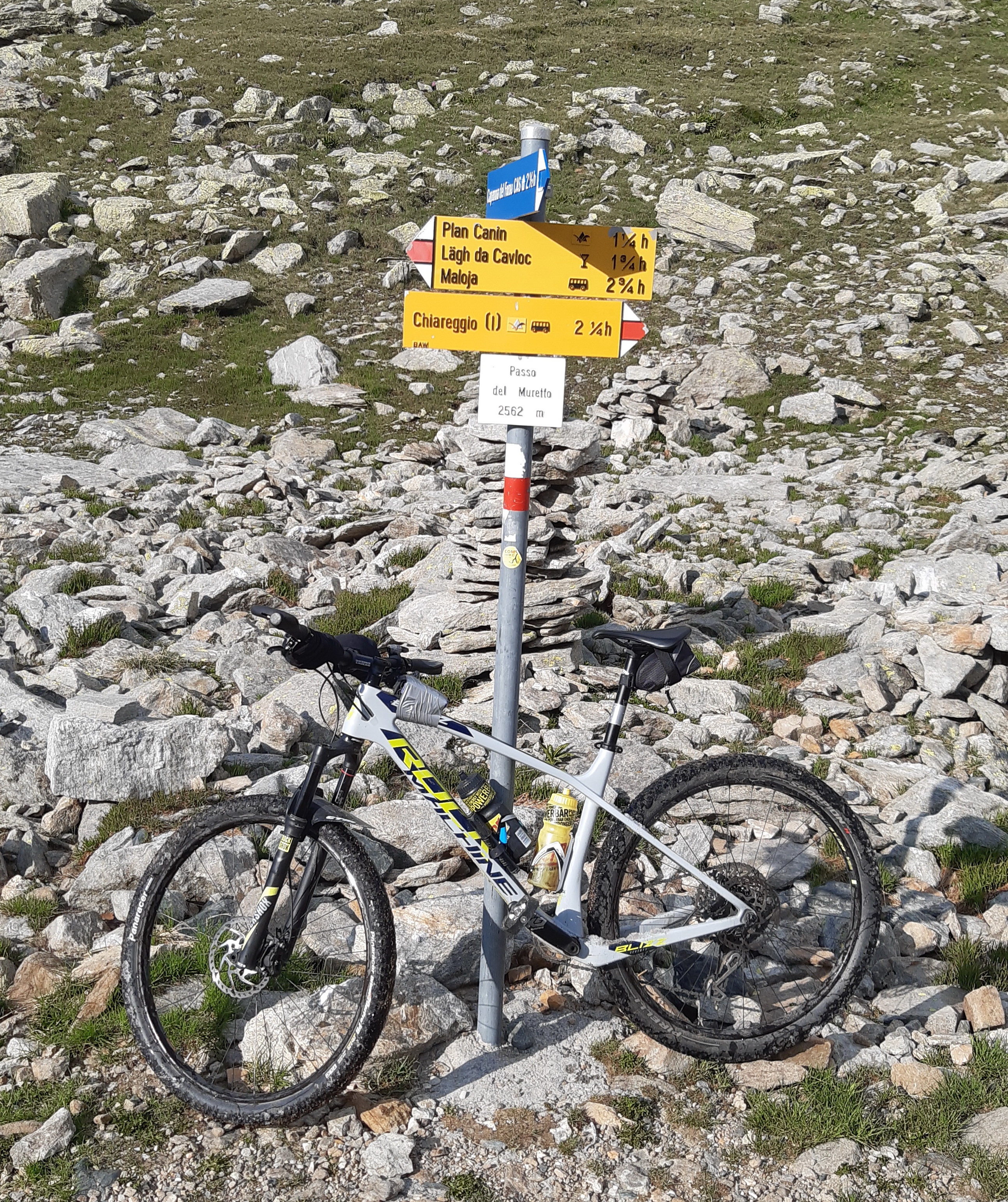 V sedle Ciancian som už vtedy objavil značku s cyklistom - zlý vtip, pomyslel som si. Toľko tlačenia a nosenia ako v týchto končinách to som už dávno na žiadnej túre nezažil... Moja pozornosť sa od myšlienky obísť Berninu na bajku za jeden deň odvrátila...