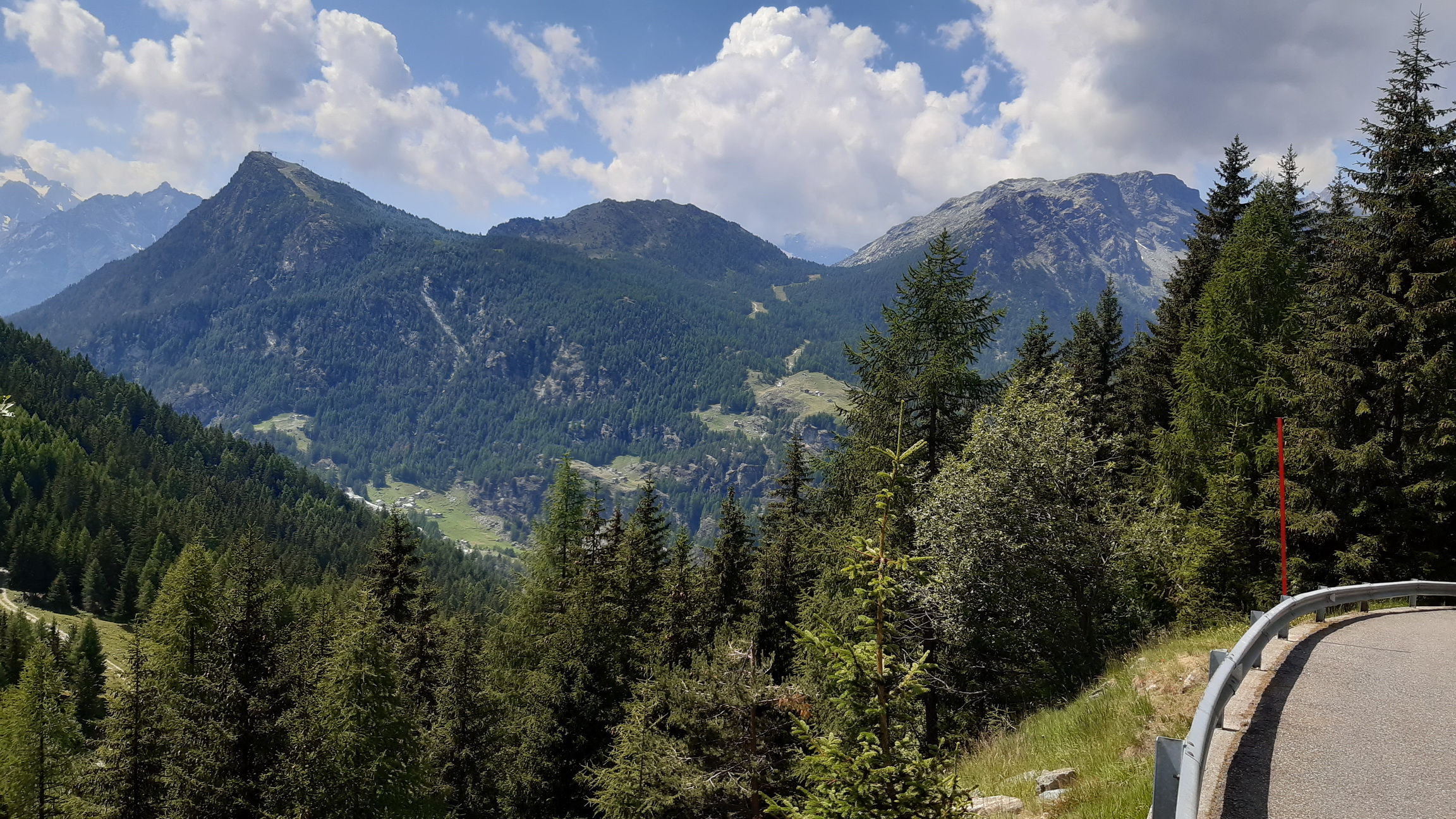 Zjazdom až do Gaspogia 956m. síce neušetrím žiadne výškové metre ale mám istotu, že pôjdem po dobrej ceste a nebudem musieť znovu tlačiť. Ako tak v totálnej horúčave začínam opäť šlapať do kopca tak v hlave prepočítavam čas: neviem koľko mi to bude cez Muretto trvať ale bude to na hrane. Stres! Point NO return som prekročil už dávno a mojou jedinou možnosťou ako z bryndy von je prejsť cez passo Muretto 2559m. do Maloje. A musím to stihnúť tak aby som bol v Maloji najlepšie hoďku pred zotmením.