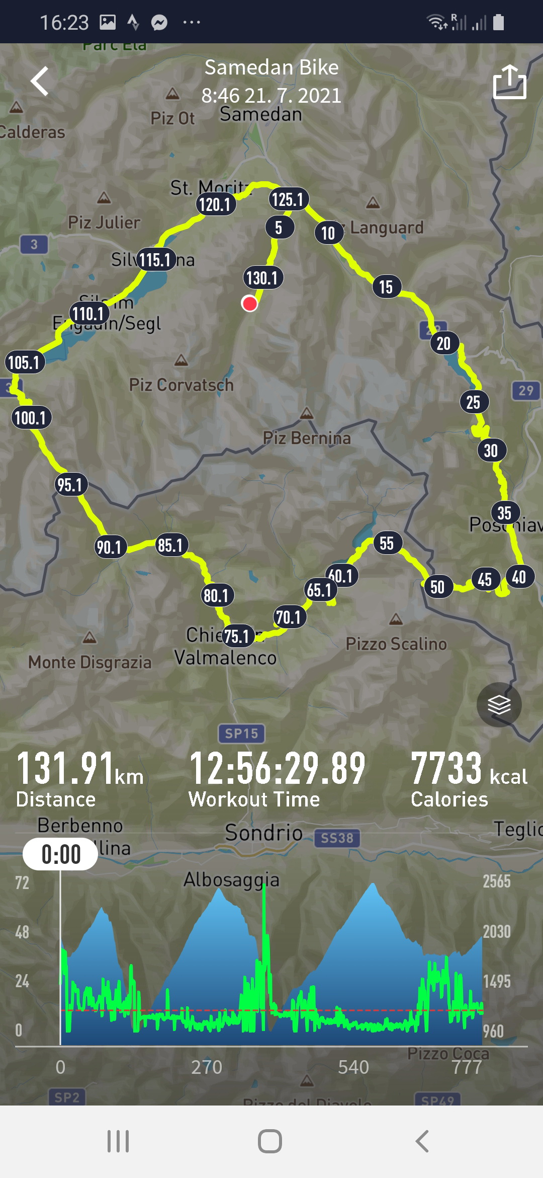 Ten okruh na mape vyzerá tak krásne... hneď na druhý deň začínam v robote 8 dňovú šnúru do ďalšieho voľna... keby som vedel ako dlho mi bude trvať dostať sa opäť do normálu nikdy by som to nešiel... nuž ale niekedy lepšie nevedieť... Bernina je zakrúžkovaná...