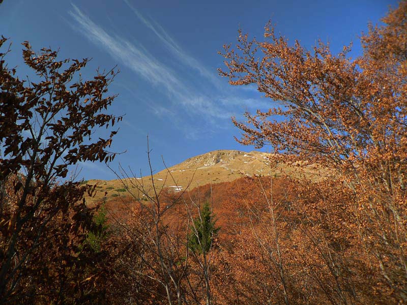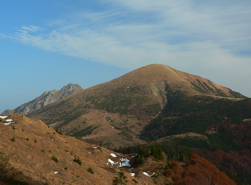 Koniec novembra 2009 bol na horách nezvyčajne teplý, zato v doline ako v práčovni. Takže to chcelo čím rýchlejšie a čím skôr na nejaký vyšší kopec. Zvolili sme východnú časť hrebeňa krivánskej Malej Fatry medzi Chlebom a Stohom, kam sa dá relatívne rýchlo „vyplaziť“ od Šútovského vodopádu. Od zastávky v Šútove – Rieke je to k vodopádu pohodlná hodinka aj niečo (podrobnejší popis je v článku o vodopáde). Odtiaľ na Mojžišove pramene riadne strmým stúpaním bučinou tiež asi hodinu a ďalších asi 30 minút na vrchol stúpania, na začiatok pohodlného traverzu popod hlavný hrebeň. Časy udávam preto, lebo oproti mape sú o dosť kratšie, pritom sme išli pomaličky, pohodovo. Slnko začalo prerážať hmlu už dolu v doline, nad lesom bol ale úplne iný svet. Rozdiel v teplote aspoň 10 stupňov a na hrebeni takmer bezvetrie. Bez problémov na tričko a kraťasy.