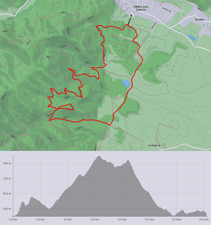 Máš návštevu, tá chce ísť von a von je hnusne. No, polohnusne, ešte sa dá ísť. Ale fučí hnusný od severozápadu, jemne mrholí a okolo obeda má začať snežiť. Tak sa treba zašiť na svahy, otočené na východ. A pretože sme v kotline, dá sa aj to. A že v Turčianskej, bude aj vyhliadka z toho závetria. Čiže vyrážame z Kláštora pod Znievom - len kúsok po zelenej smerom na hrad, ale stočíme to doľava na lesné cesty po úbočiach, po ktorých som sa nedávno ešte motal na bajku ( TU ). Po nich dôjdeme pohodlne, aj keď možno trochu monotónne lesmi, na Ondrašovské skaly - to je tá vyhliadka, aj tú sme už mali ( TU ). Z nej strmo dole a podhorím sa vrátime nazad.