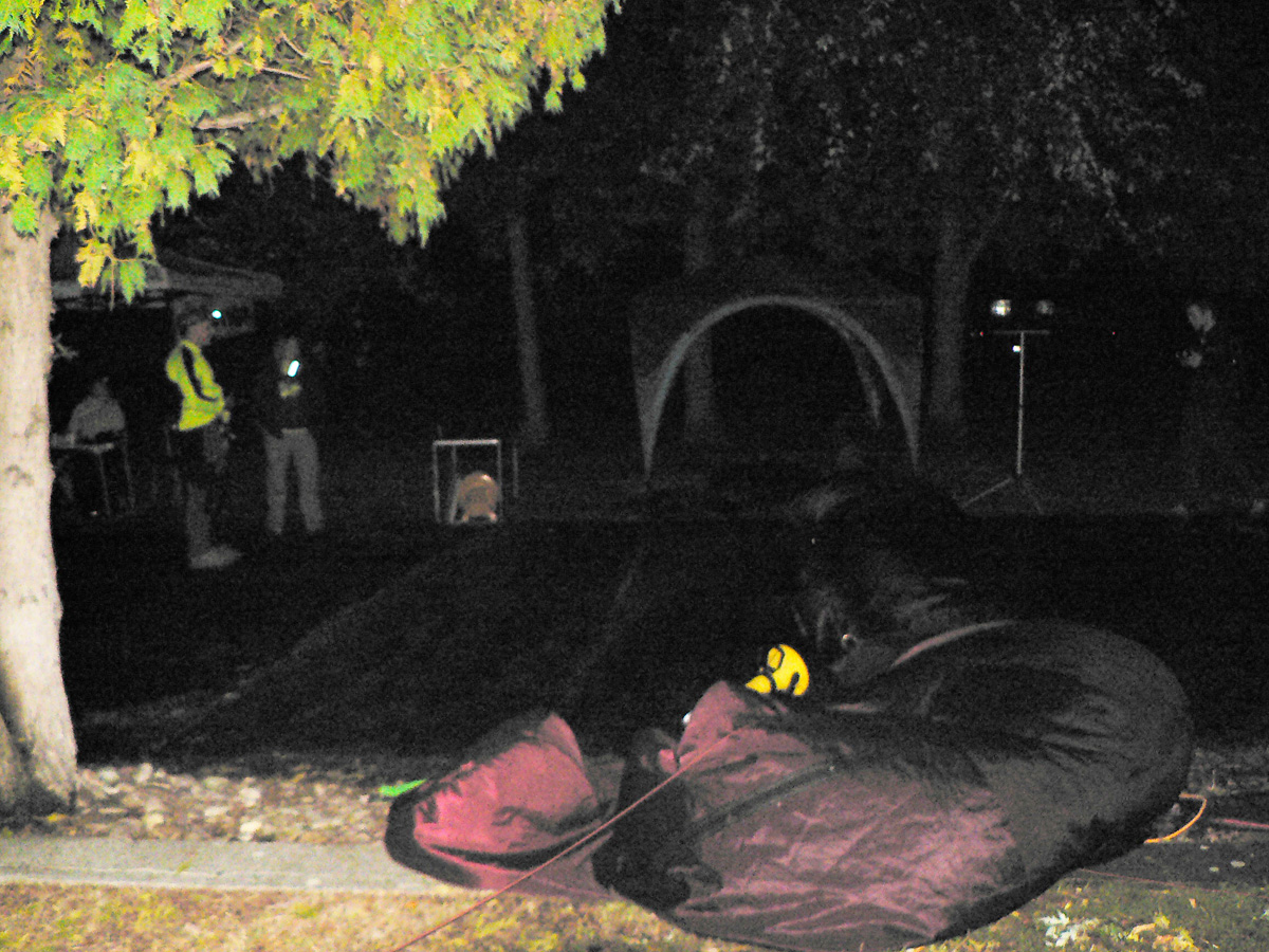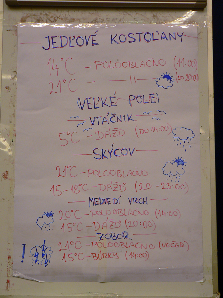 Dážď akosi už patrí k P100, že? A podobne ako orgovia doťahujú svoju robotu rok od roka k dokonalosti, aj dážď ako keby stále lepšie vedel, kedy má udrieť a na ako dlho... Teraz poriadne udrel nad ránom, po štarte ho to bavilo ešte asi dve hodiny a keď zistil, že neodradí, dal si pauzu. Ale vrátil sa zas večer, napríklad Žibrica aby sa fajne kĺzala. Najmä odkedy ide P100 z Handlovej, mám dojem že prší každý ročník viac. Ešte že sa v tom Asterione dá ukryť - prezentácia aj štartujúci. Len náčelník chudák behal s megafónom po lejaku a snažil sa nahnať ľudí spod strechy na štart. Ale natlačili sa akurát pod párty stan, skoro ako na MF100. No, ale zas nepršalo až tak... Ani trhovník s palicou nechodil vylievať napršanú vodu z previsov :-)