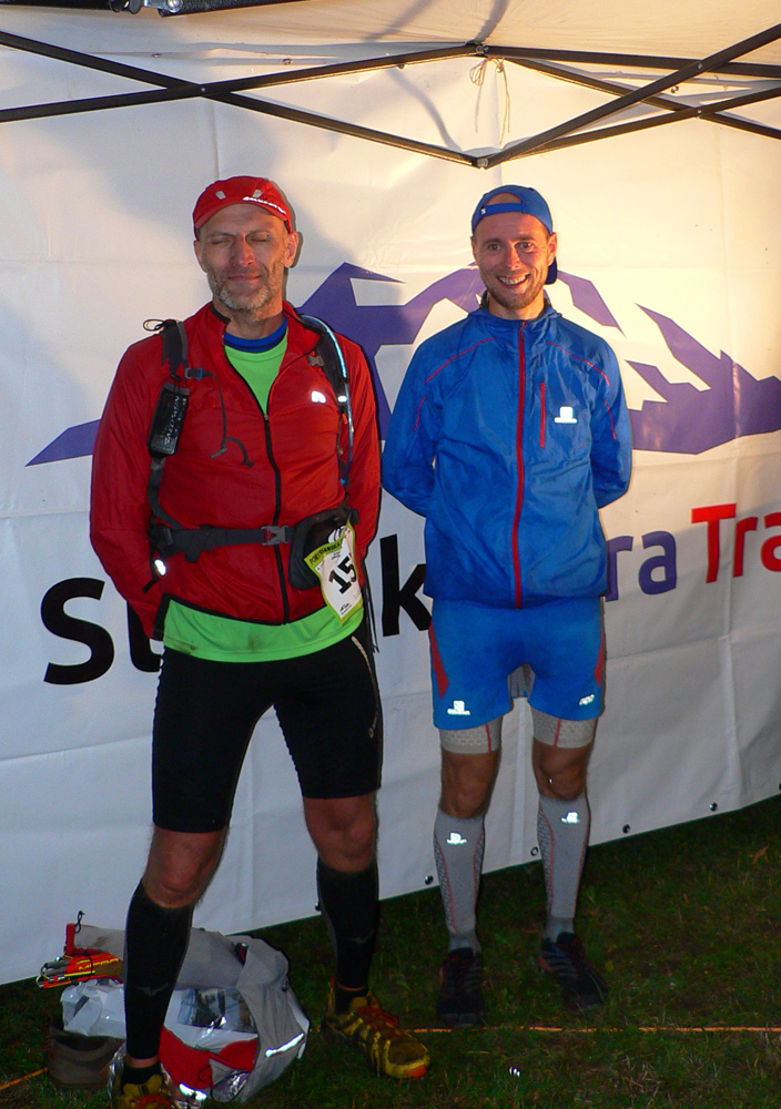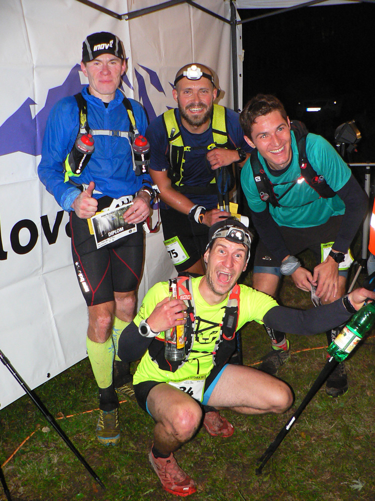 A ako to prebiehalo na čele? Maťo Halász prišiel obhajovať a len tak mimochodom posunul svoj traťový rekord o pol hodinu. K nemu sa pridal od štartu David Pelíšek z ČR, ktorý vraj má maratón pod 2:30 a zbehnuté nejaké päťdesiatky, ale toto bola jeho prvá stovka. Klobúk dole pred ním! Chlapi to ťahali spolu od štartu, v spolupráci vraj od Jedľových Kostolian. Až hodinu za nimi (!!!) dobehol Paťo Hrotek, ten ale keď zahrial motory, zaútočil odzadu takým tempom, že ihličie opadávalo. A ďalší taký Tomáš Borčin. Paťa vraj na chvíľu aj dobehol na Remitáži, nakoniec 10 minút za ním. Pod Skýcovom si ešte nebol istý, či si dobre rozložil sily – tempo ale také, ako keby bežal desinu cezpoľák. Chlapi, vy ste mimozemšťania... Za nimi zas hodina diera. Stano Skladaný tradične vyhral medzi vojakmi, parádnym časom pod 13 hodín z piateho miesta celkovo. Medzi ženami Vika Drenková (aj keď rozbitá na šrot kvôli problémom so žalúdkom) systémom štart – cieľ o hodinu pred Katkou Gerényiovou. Tretia Mária Štrbová, vyzerala že v pohodke :-) Gratulácie všetkým, aj ostatným nemenovaným, lebo nielen o prvé miesta prebiehali boje!
