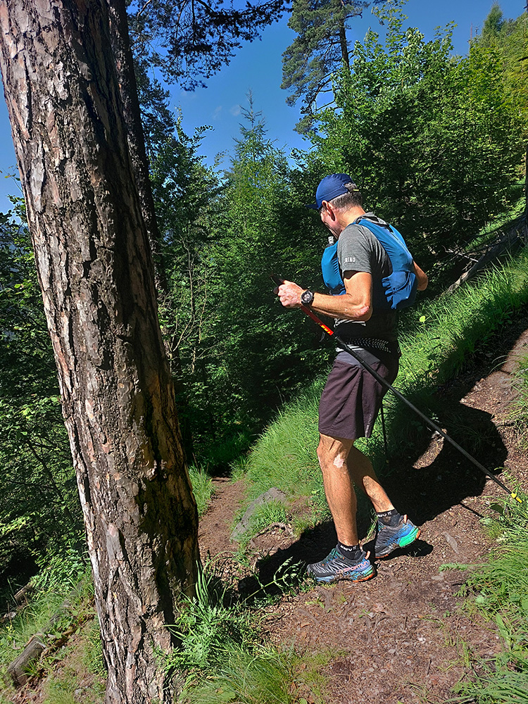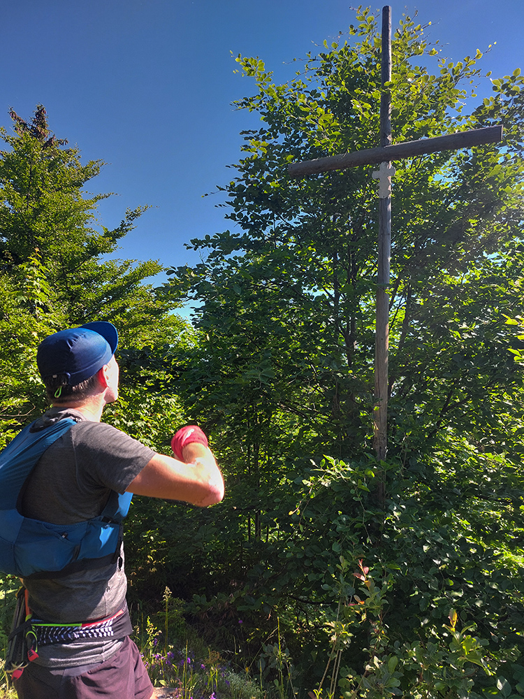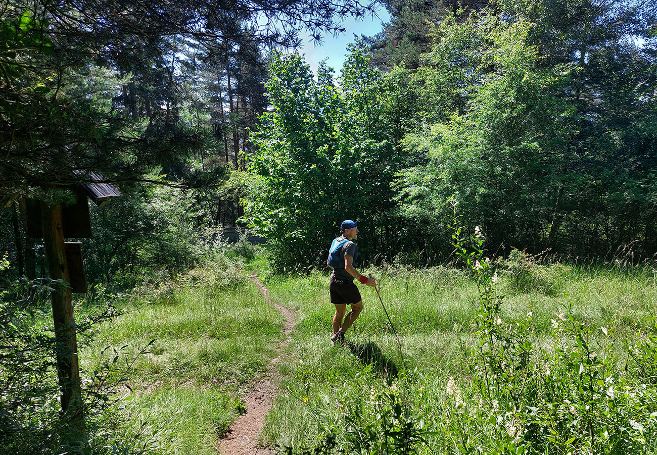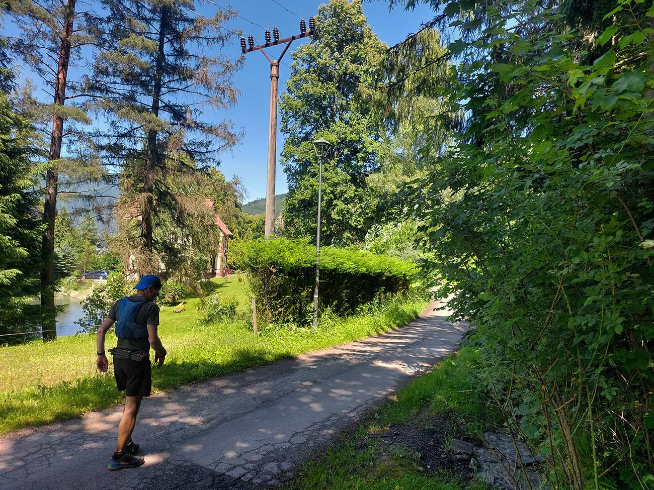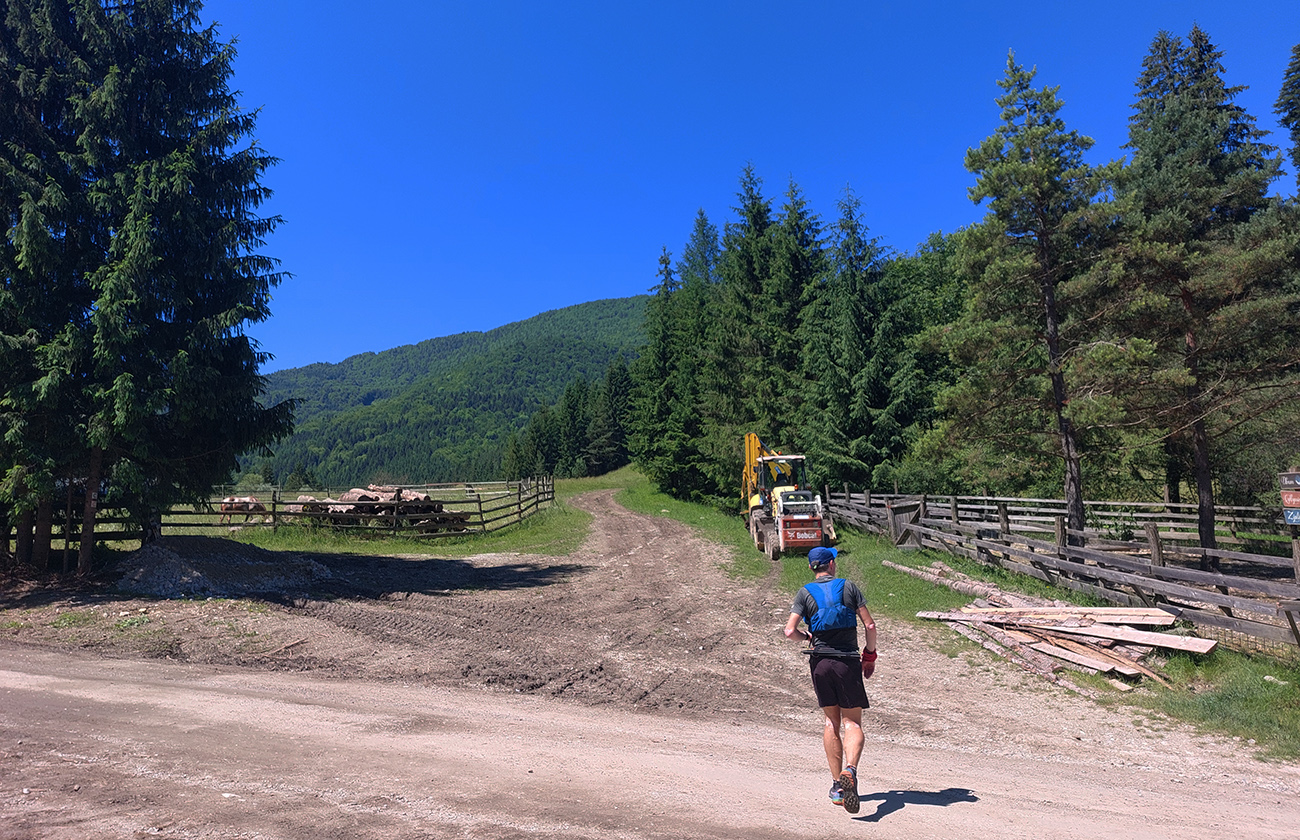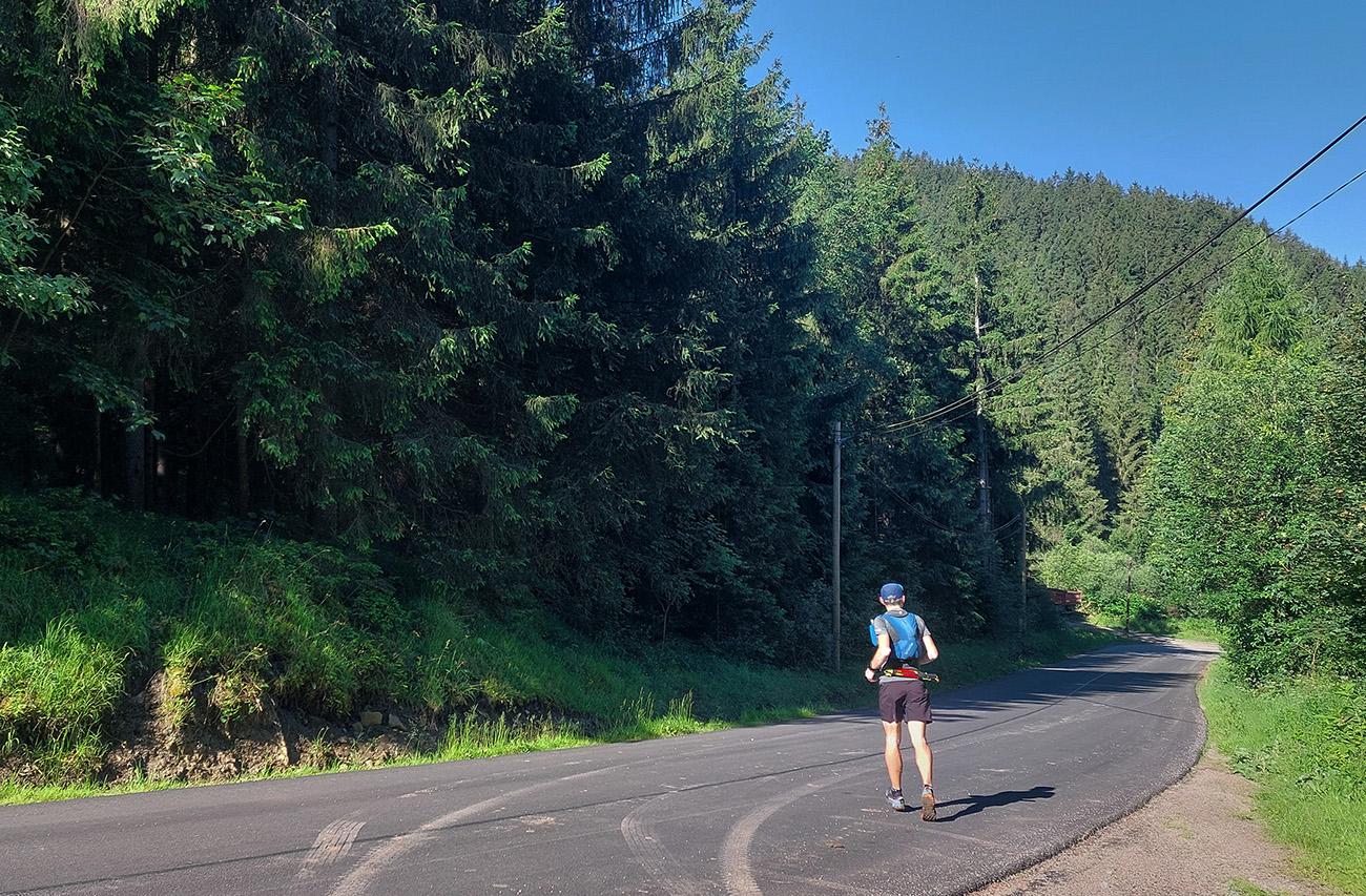 Potom už ale až príliš dlhý a monotónny úsek po šotolinách, po cyklotrase smerom do Ľubochnianskej doliny, až kým sme ju neopustili v Sedle pod Červeným grúňom. Aspoň že tieň, lebo na slnku už dobre pripekalo. Pár studničiek a prameňov padlo vhod. Zhodli sme sa, že obaja nemáme radi takéto dlhé, nemastné – neslané stúpania, ani na beh, ani na chôdzu. Krízu som zahnal gélom a medvede, pred ktorými nás varovali protiidúci cykloturisti, asi fučaním a dupaním.