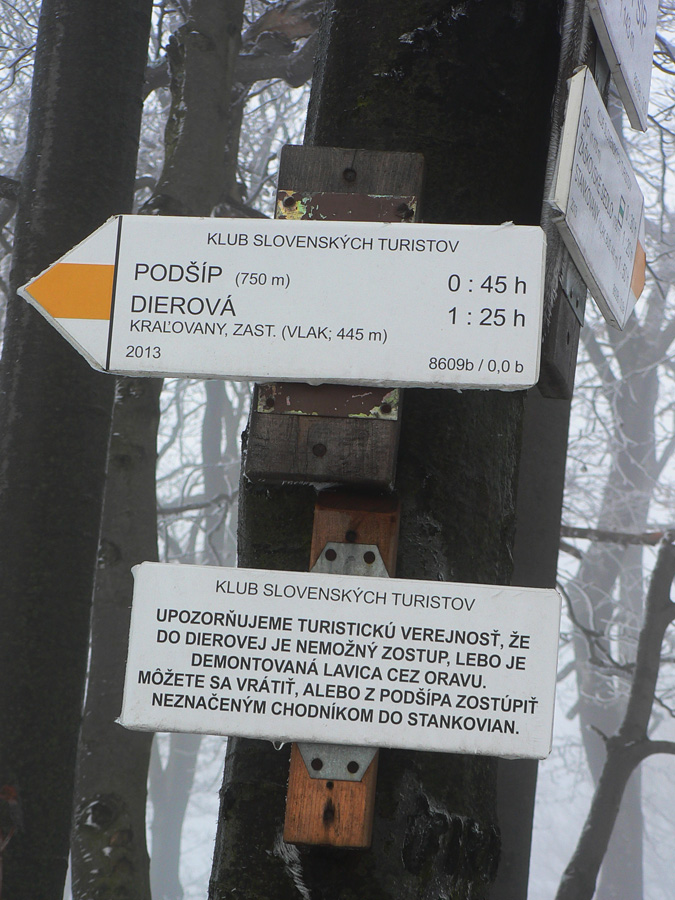 Zaujímavé sú aj tabuľky s upozornením (hore na Šípe aj dole v Podšípe), že do Dierovej sa po žltej nedá kvôli zavretému mostu cez Oravu. Fajn, že to niekomu napadlo, lebo mostík je nefunkčný už pekných pár rokov a viem si predstaviť tých, ktorí o tom nevedeli, ako nadávali, keď k nemu prišli :-)