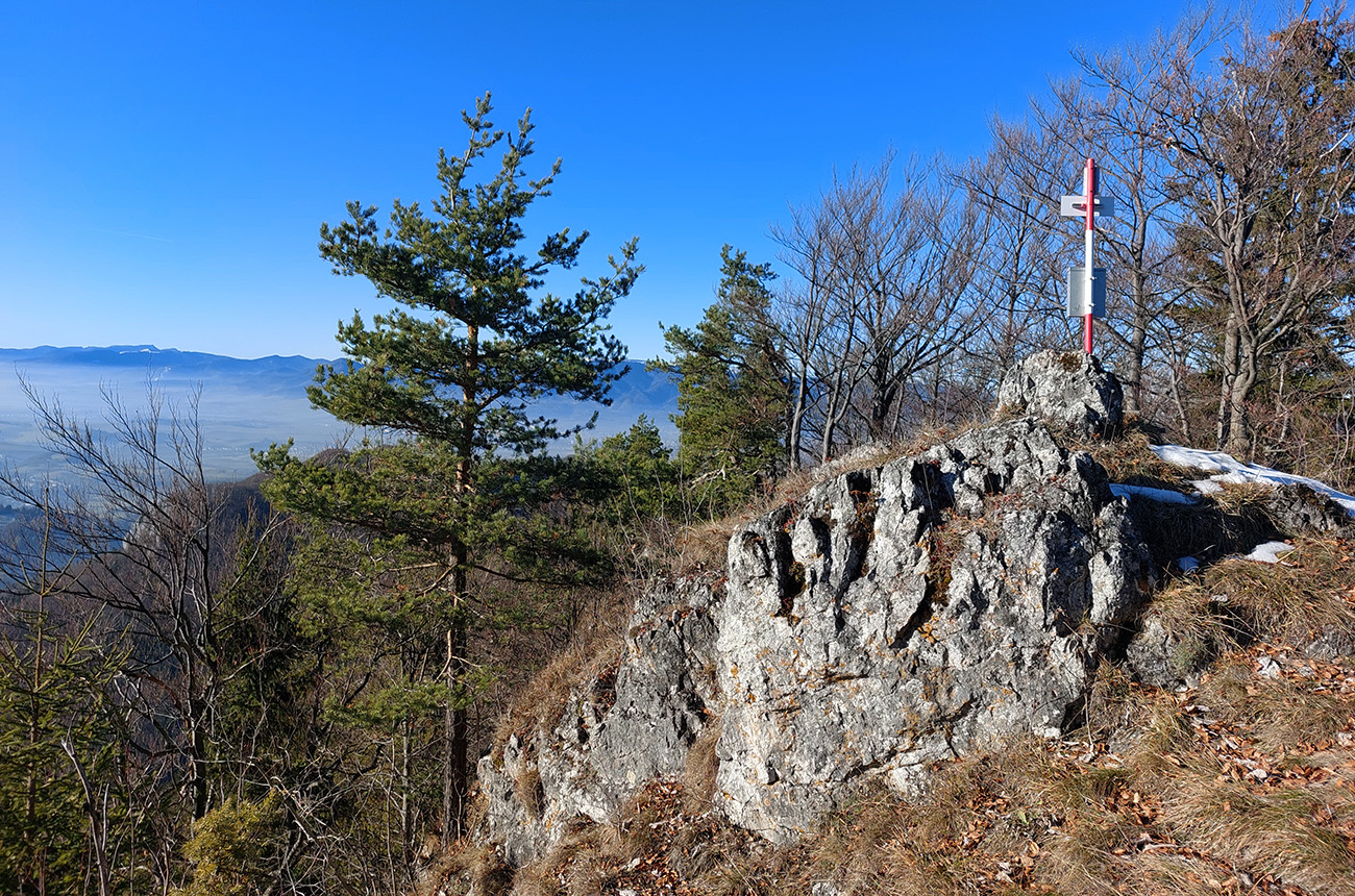 Nenápadný kopec v sz časti Veľkej Fatry, nad Podhradím, menej navštevovaný ako susedná Katova skala. Ale trochu vyšší, tak výhľady grandióznejšie a na všetky strany. Aj Západné Tatry odtiaľ vidno. Síce na vrchol nevedie turistická značka, ale ľudia tam chodia, preto aj v závejoch napadaného bukového lístia je chodník hore identifikovateľný. Inak aj poriadne strmý, ale to je len záver výstupu, inak pohoda po lesných cestách. A tie boli čiastočne motiváciou ísť hore práve koncom roka – lebo inak sú často dosť blatisté (veď ako v hospodárskych lesoch). Ale vďaka koncoročným inverziám boli teraz kvalitne primrznuté. Hore je triangulačný bod a Katastrálny úrad si na tú tyč pri ňom osadil aj novú tabuľku s menom kopca a výškou, normálne ako keby to turisti spravili. Je tam aj drevorezbárske dielko, podobné tým nad Štiavničkou a na Katovej skale, aj s druhým (pôvodným?) názvom Brložnica. Nech si každý vyberie. Tak sme spravili pohodový, asi 14-kilometrový okruh z Podhradia a navštívili sme aj susedné dominanty, nech sa to počíta: po červenej Maleníckou dolinou na Katovu skalu, kúsok nazad, bez značiek na Prieložnicu a dole do Podhradskej doliny na zelenú, po nej na Sučiansky hrad a dole do Podhradia zas bez značky priamo. Spestrenie na záver: vyhliadkové bralo so základmi starého hrádku (Bašta) nad dedinou: