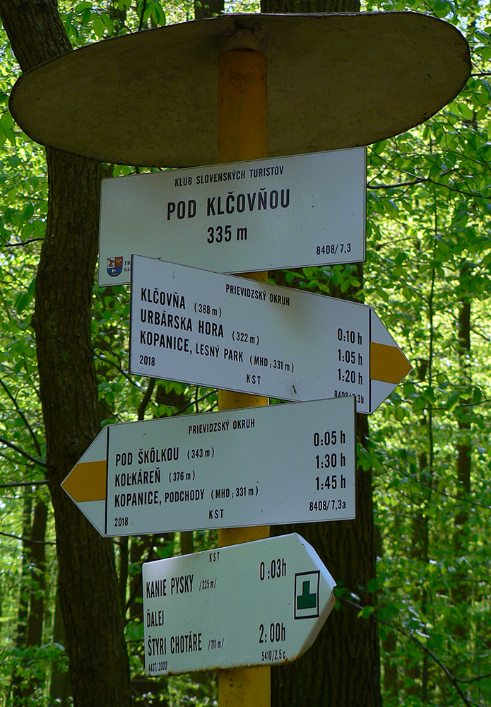 Tak najskôr lesopark: príjemné hlinené chodníky a cesty pod sviežimi zelenými korunami, aj deň po daždi už polosuché, skoro nič sa nelepí. Len krátky úsek za smerovníkom „Urbárska hora“ taký úzky tunel v kroví okrajom lúky - pre bajk trochu nepohodlné. Cestou zo dva výhľady cez kotlinu k protiľahlej Magure. Na záver dole z kopca popri lesníckej drevenici Klčovňa, k potoku a na asfalt. Tamojší smerovník má sranda názov: Kanie pysky.