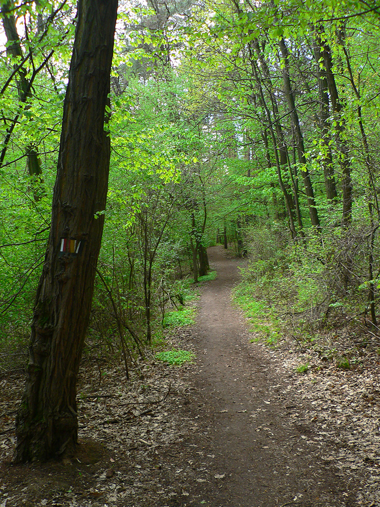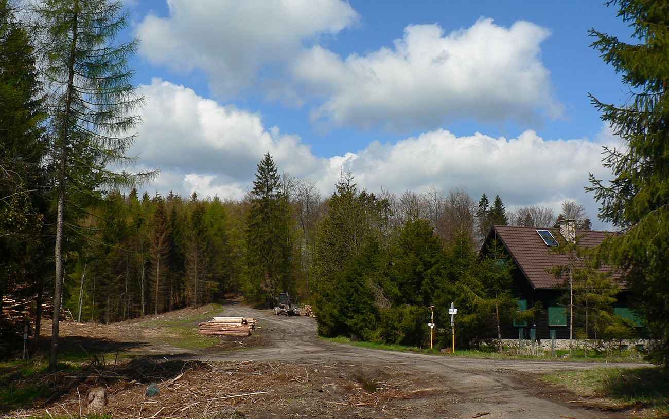 To už sme „Pod škôlkou“ a nasleduje ten doklus po tvrdej ceste. Okraje má našťastie mäkké, hlinené, tak fajn, a nad hlavou furt les. Ku koncu ju sprevádza singlík, škoda nevyužiť. To už sa začínajú objavovať „prvky civilizáce“ ako vtáčie kŕmidlá a kadejaké tabule, tak ešte krátka odbočka ku vyhliadkovej veži a o chvíľu už tá kofola syčí :-)