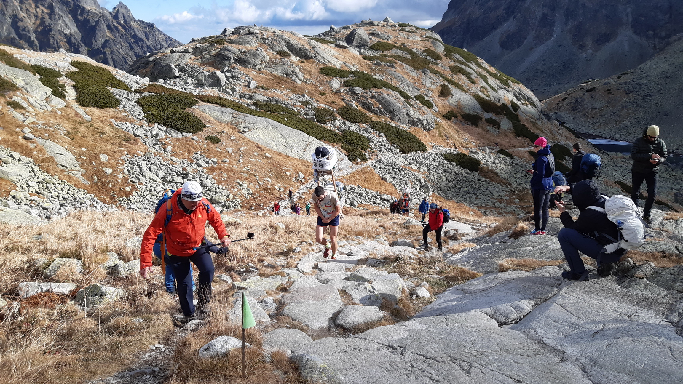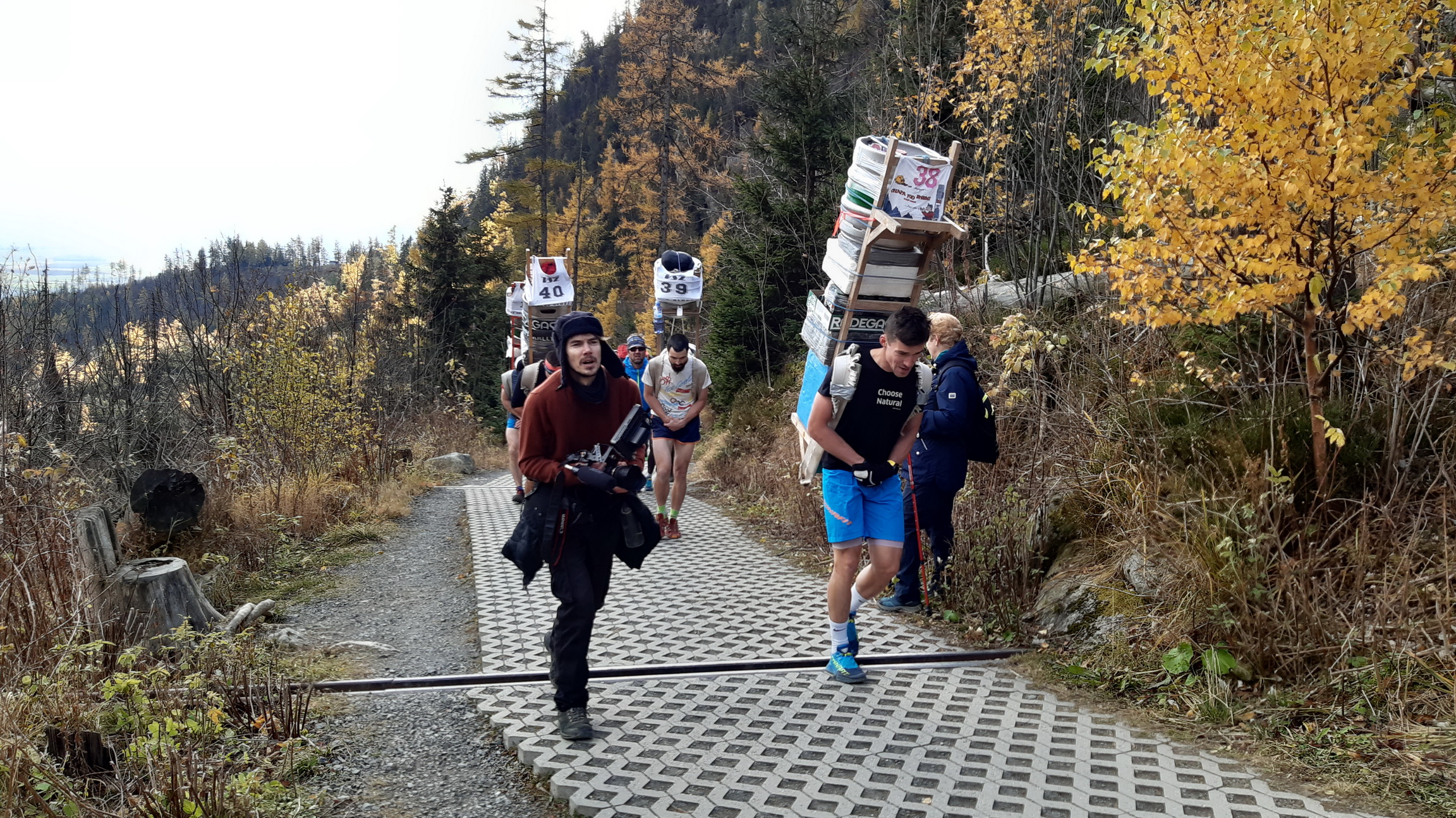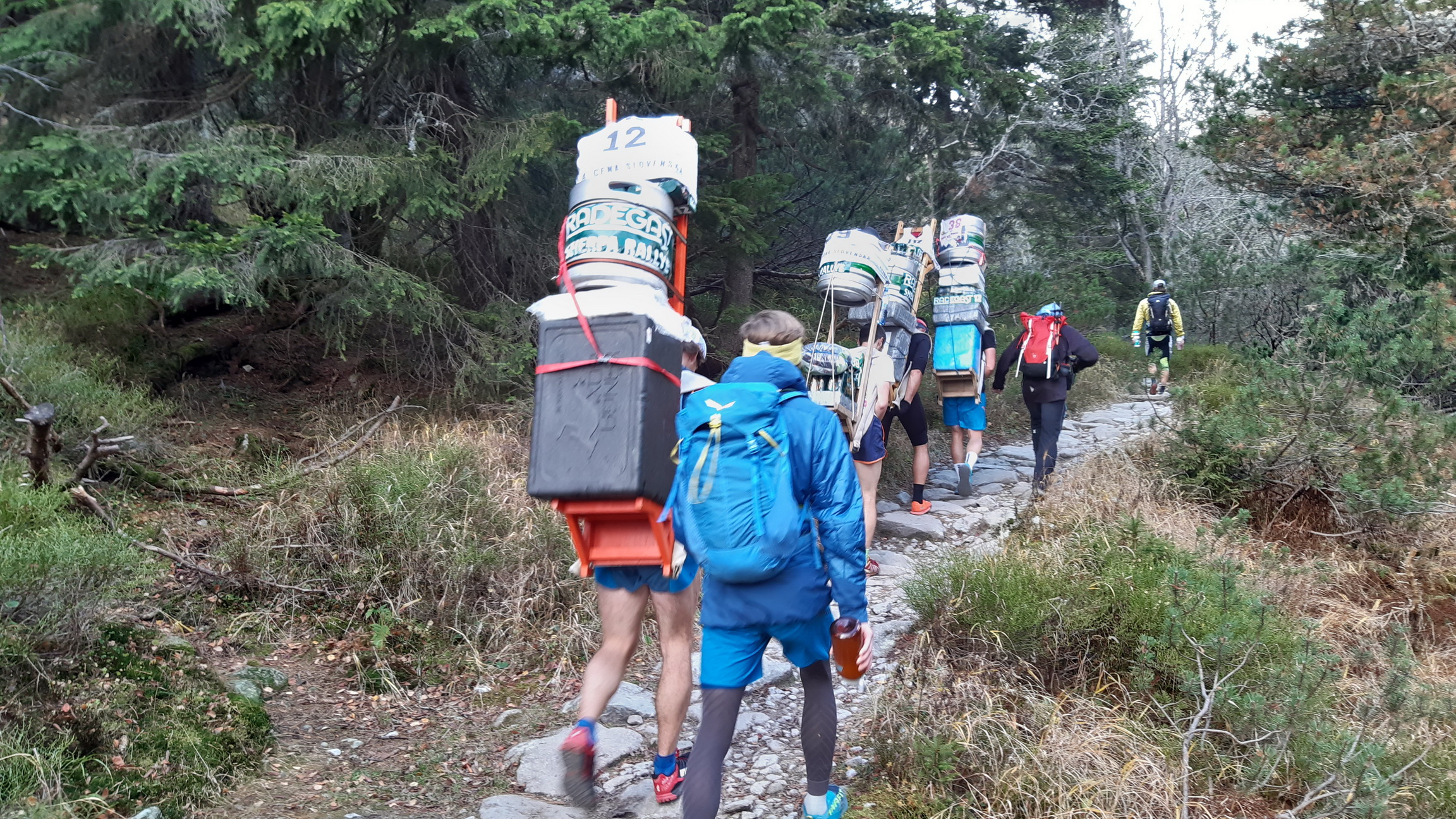 Je určite veľmi optimistické, že túto výnimočnú akciu sa tentoraz podarilo zorganizovať v takomto štýle. Kým sa to prekvapivo početné štartové pole stihlo nabaliť, síce bolo treba posunúť štart, ale to nevadilo. Tradične výstrelom šampanského bola šerpa odštartovaná... Teda jej prvá časť, v ktorej šlo o to, kto hore prvý vybehne. Chlapci so 60 kilami, dievky s dvadsiatkou.