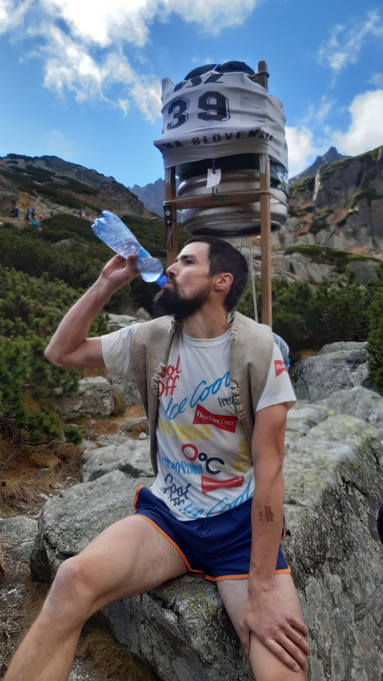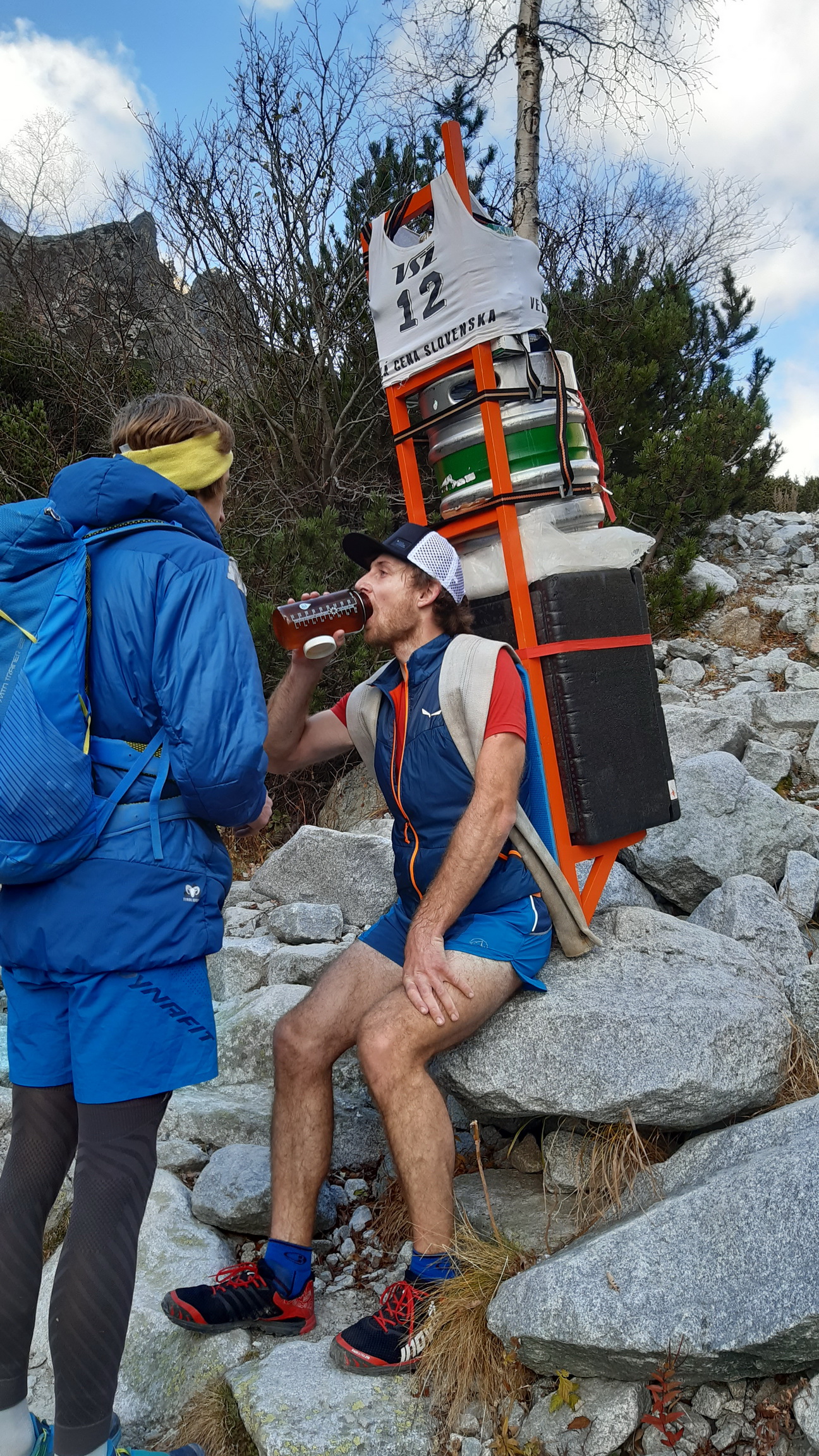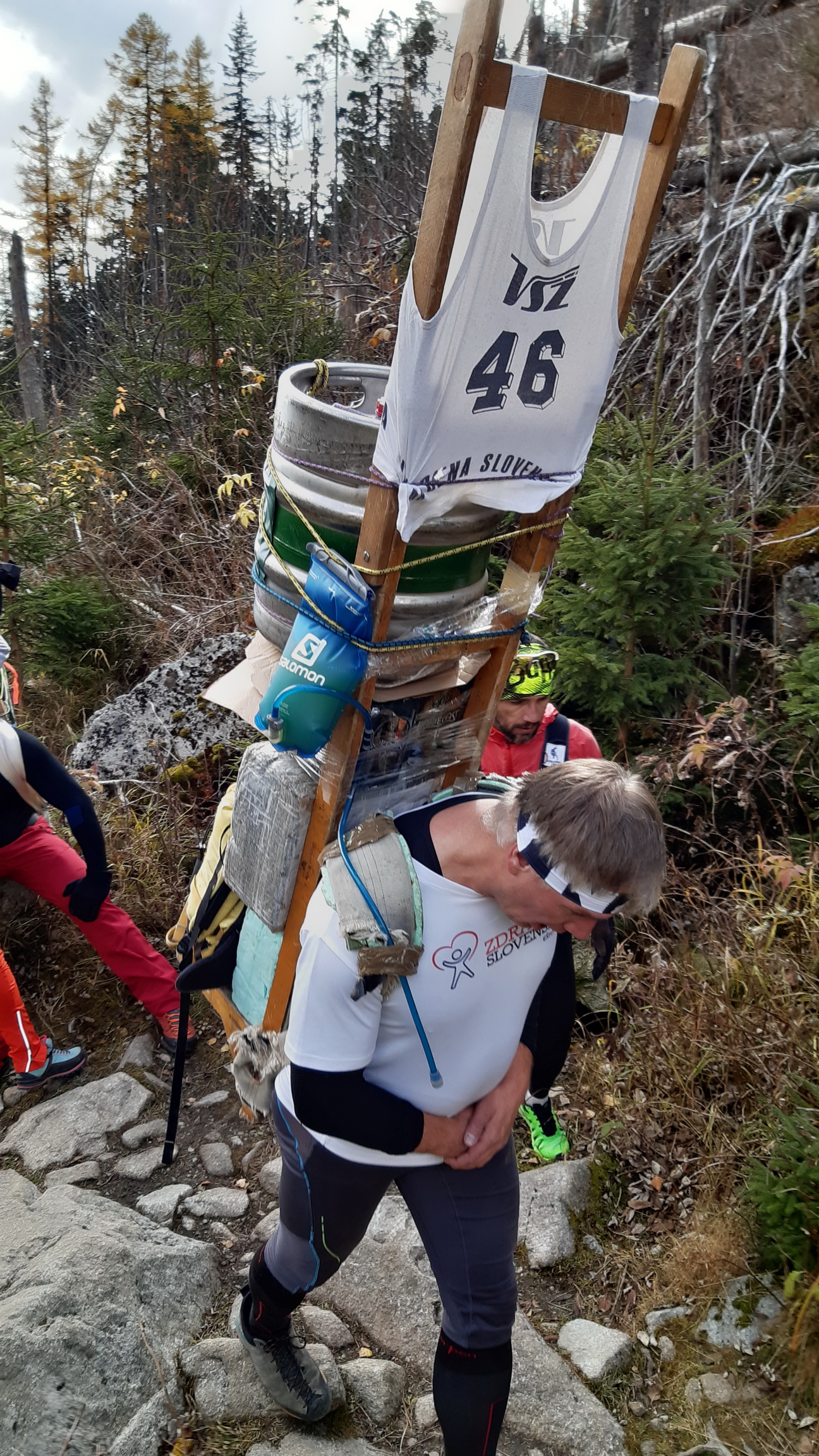 Je určite veľmi optimistické, že túto výnimočnú akciu sa tentoraz podarilo zorganizovať v takomto štýle. Kým sa to prekvapivo početné štartové pole stihlo nabaliť, síce bolo treba posunúť štart, ale to nevadilo. Tradične výstrelom šampanského bola šerpa odštartovaná... Teda jej prvá časť, v ktorej šlo o to, kto hore prvý vybehne. Chlapci so 60 kilami, dievky s dvadsiatkou.