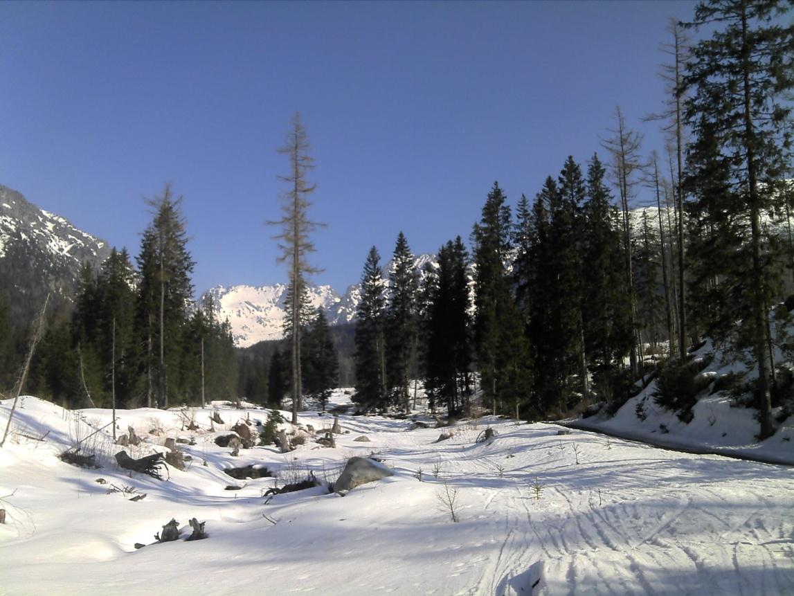 Tatry, a najmä Vysoké, sú krásne v každom ročnom období, a na jar ešte viac. Potešia nielen oko, ale pôsobia blahodarne aj na dýchací systém. Zostalo v nich síce len málo lyžiarsky neprejdených miest, ale aj časté opakovanie osvedčených túr v dobrých podmienkach vždy poteší. Utorok 24.03. sa javil byť takým dňom, a Mengusovská dolina vhodným konkrétnym cieľom. Lyže bolo možné obuť hneď za vodárňou za traťou TŽ.