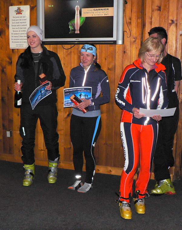 Aspoň sa ukáže, kto „nie je otrokom svojich lyží“ a nebude ich šanovať. Pravidlá sú jednoduché: štart až dolu, obrátka až hore, cieľ až pri bare :-) A až o 15:00, čo je od deviatej od rána dosť výživné – veď maratón. Kontroly žiadne, všetko na čestné slovo. Najlepší to dali 6 až 7 krát. Cieľová rovinka - serpentínka nad chatou bola tiež riadne iskrivá, čerstvý poprašok všetko pekne zakryl, až kým tade niekto na lyžiach neprešiel, no fuj. Zamračené a trochu vetríka spoza kopca asi väčšine vyhovovalo, lebo keď sa ukázalo slnko, niektorí si sťažovali, že sa začínajú prehrievať. Nakoniec sa všetkých asi 32 maratóncov (z toho 7 „tých krajších“) našlo v tom bare, niektorí sa dokonca pridali k pretekom až po štarte, tak sa im to zapáčilo. Zjazdárov bolo na svahu máličko, a keby aj nie, je dosť široký, aj šľapiek by sa oveľa viac zmestilo. Parádna akcia to bola, ideálna do snehovej mizérie. A ak nebude budúci rok taká utajená, isto viac ľudí príde. Len či sa pomestia v tom bare?