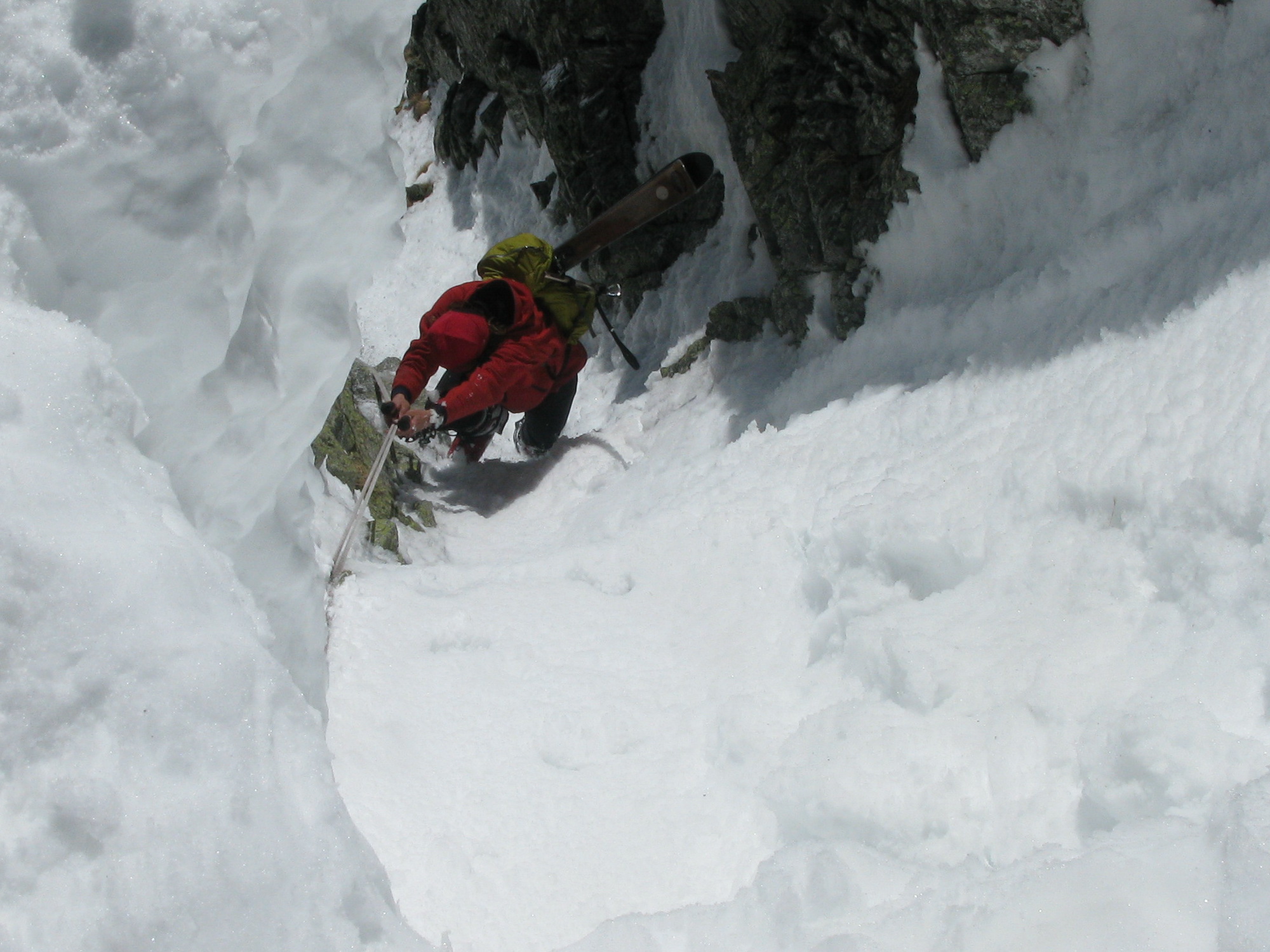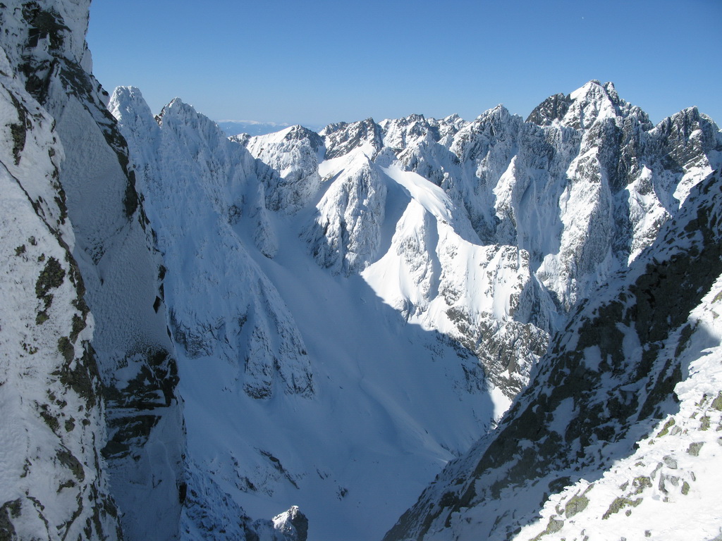 Vyšiel som hore na haršajzniach, Miki musel napešo. Ide s ťažkými lyžami. Frírajdové Skitraby však náležite využíva už pri zjazde do Gerlachovských spádov. "To by bola fotka!" Kričím naňho, keď schádza na lyžiach cez kamene a stojac špičkami a pätami na kameňoch má pod nohami vyše polmetrovú dieru...
