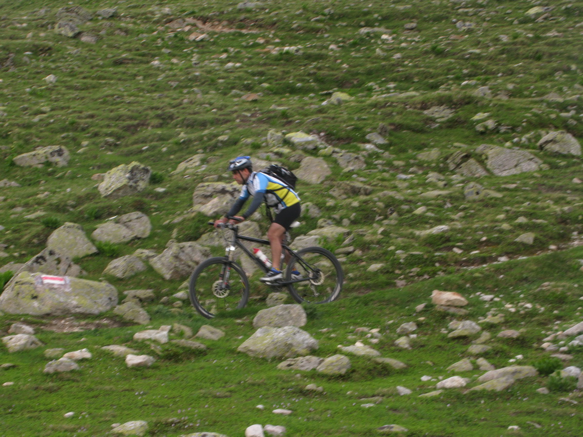 Val Susaunna však stála za to, výhľady nádherné. Zjazd už pokračoval štrkovou cestou, miestami však bola taká strmá, že v opačnom smere by bolo treba tlačiť...