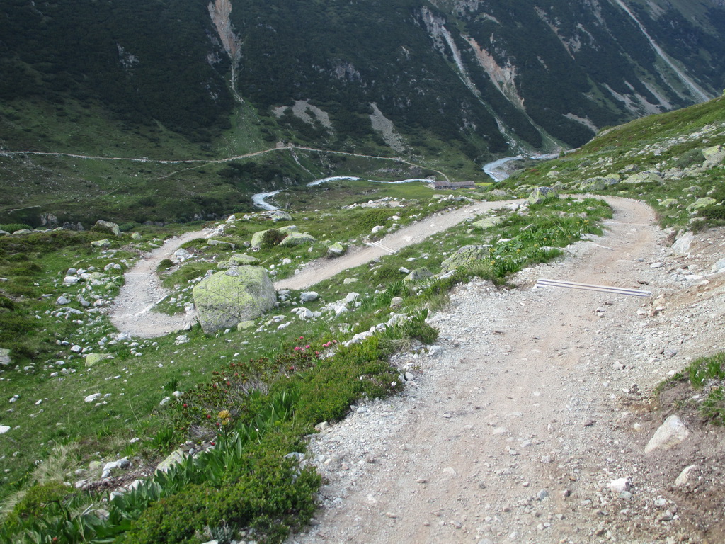 Zo sedla Suvretta už nasledujú orgie dole do doliny Val Bever. Tu som už moc nefotil, ale... Jazdil. Zjazd je to určite ťažký, párkrát som aj musel nohu na zem dať. Dokonca aj zo dva razy bajk asi dva metre preniesť. MTB v tejto podobe je ťažký šport, tam kde ešte niekto vychutnáva, iný už sa trápi s bajkom na pleci...