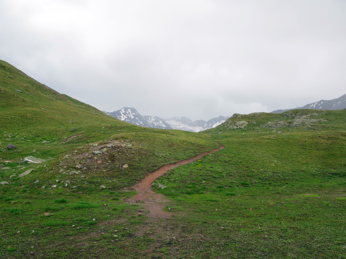 Livigno ako také už opisovať nebudem. Článkov o tejto oblasti je tu už neúrekom (odporúčam kliknúť na oblasť LIVIGNO). Samozrejme už viem kde majú super zmrzlinu, zastavím sa aj na trojuholník pizze a za mierneho dažďa vyrážam po asfaltke smerom ku švajčiarskej hranici. Na začiatku stúpania, v miestech odkiaľ už je vidieť Forcella Livigno, odbočujem z asfaltky. Čaká ma druhý dnešný výšľap, druhá tlačenica.