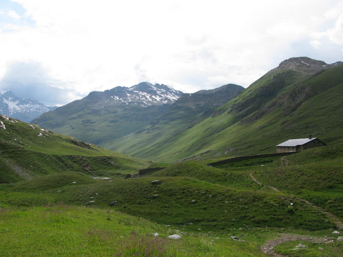 V sedle si dávam zaslúženú pauzu, vychutnávam si výhľady smerom na Livigno. Zjazd smerom do Livigna je zaujímavý len v hornom úseku po chatu Casana, odtiaľto už vedie strmá štrková prístupová cesta.