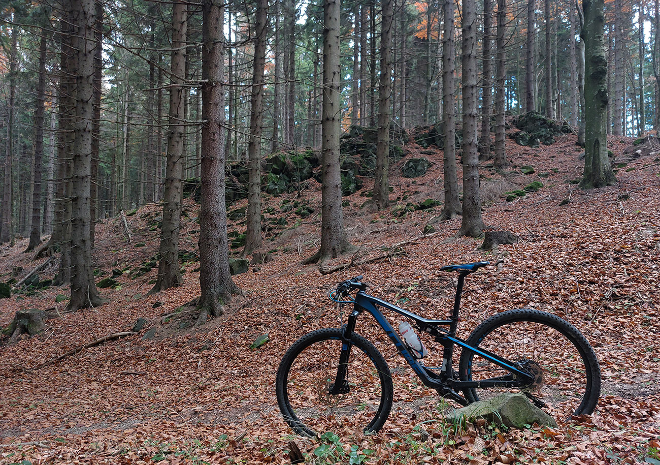 Dušičkový víkend a počasie konečne chvíľu prívetivé – nepršalo už zo tri dni, to je na túto usmoklenú jeseň poriadne dlhá pauza! Ako bola zrušená ostatná zima, tak teraz aj babie leto, že? No aj teplo udrelo na dušičky poriadne, ale zas tie blatá teraz už tak rýchlo neschnú. Tak sa mi nechcelo moc sa zaprasiť. Mal som síce na bajku už dve vrstvy blata, vari ešte zo septembra a októbra, tak že sa nič nestane, ak pribudne aj novembrová, ale zase s mierou! Bicykel v trojobale? Nie, lebo viem, že pod Flochovou v Kremnických vrchoch sú kilometre exkluzívnych lesných ciest, ozaj veľa ich je bielych, šotolinových. Ako na ozajstných pretekoch Strade bianche, ani tu sa nejde stále po šotoline - aj asfalty kadejaké a kameňohlina, samozrejme. A tunajšie strade bianche majú často zelený stredový pruh. Že mám týždenník na vlak, nič ľahšie ako dokúpiť lístok pre bicykel a vyložiť sa na Štubni z Fatrana. A už von z dediny cesta k lomu suchá ako v strede leta. Len keby nohy išli – zriedka už sa na bajk dostanem, tak to potom aj vyzerá, aj som pôvodný zámer trochu skrátil. Ďalej čítať ani netreba, fotonávod je v galérii a tu hore gpx. Takto to celé vyzeralo: