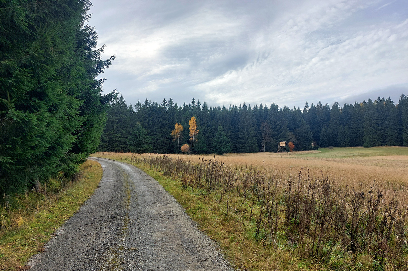 Tak nazad dole a z križovatky do ešte miernejších sklonov po príjemne praskajúcej šotoline, smer sedlo (alebo skôr križovatka) Široký peň. Cestou jedna poriadna zákruta, okolo prehľadné lesy a šírka aj pre kamión. Vynoril som sa na tej križovatke prvý raz, ešte dva razy som to mal v pláne, chystal som sa to tam poriadne zauzliť.