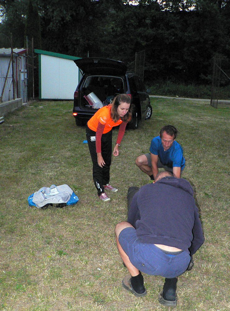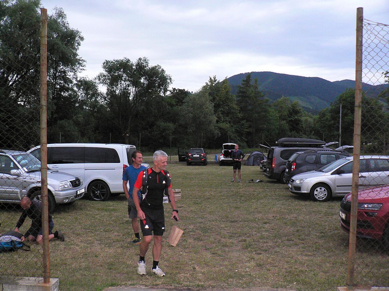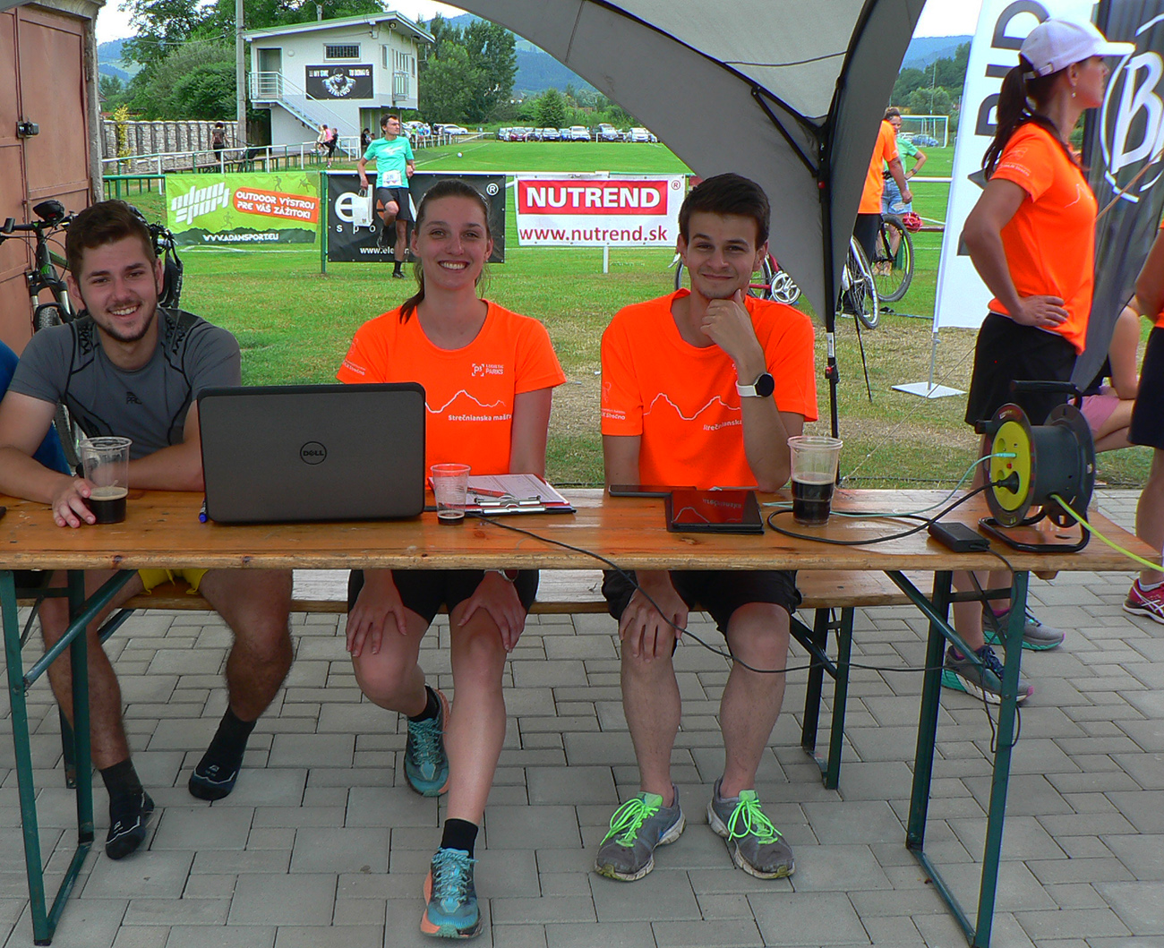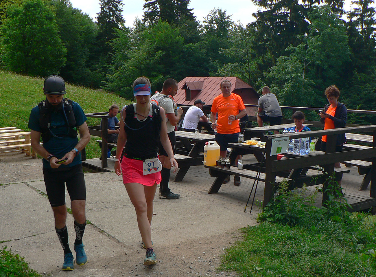 Registrácia fičala v piatok večer aj v sobotu ráno - zdalo sa, že ako hodinky, organizátori skúsení! Prespať sa dalo okolo futbalového ihriska, aj po miestnych ubytovniach, aj vo vlastných stanoch. Parádne zázemie je tá miestna Marakana pre celú akciu a trávička hebučká, ani karimatky hádam nebolo treba. K tomu bufet a teplá voda v sprchách furt, pre nenáročných hneď vedľa tečie Váh. Večerný príchod bol nutný, lebo štart dlhej trate o šiestej ráno. Na polovičnú (druhé kolečko cez Minčol) vyrážalo potom druhé stádo neskôr, o pol deviatej. Skorý štart bol fajn, lebo cieľové limity boli veľmi benevolentné pre obe trate, ale najmä mal byť príšerný hic. Veď aj bol, našťastie trochu pod mrakom a ráno z tej sivej deky aj symbolicky pokropilo a príjemne prevoňalo tie púdrové chodníky. Lebo sucho je teda fest a už dlho.