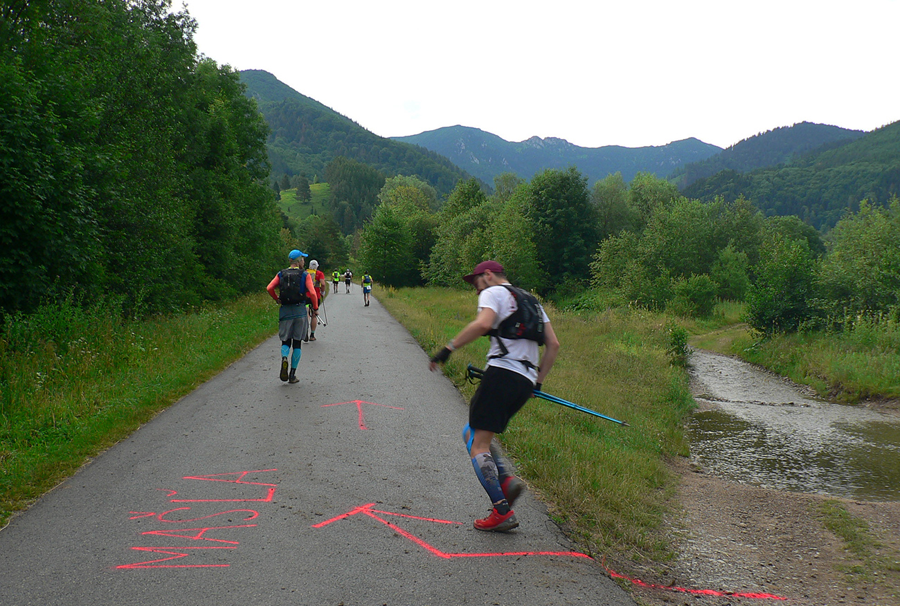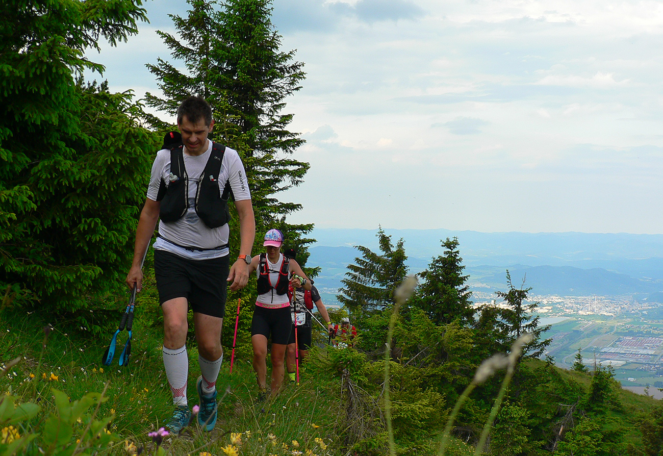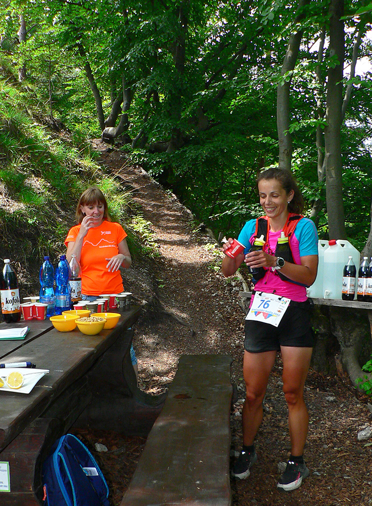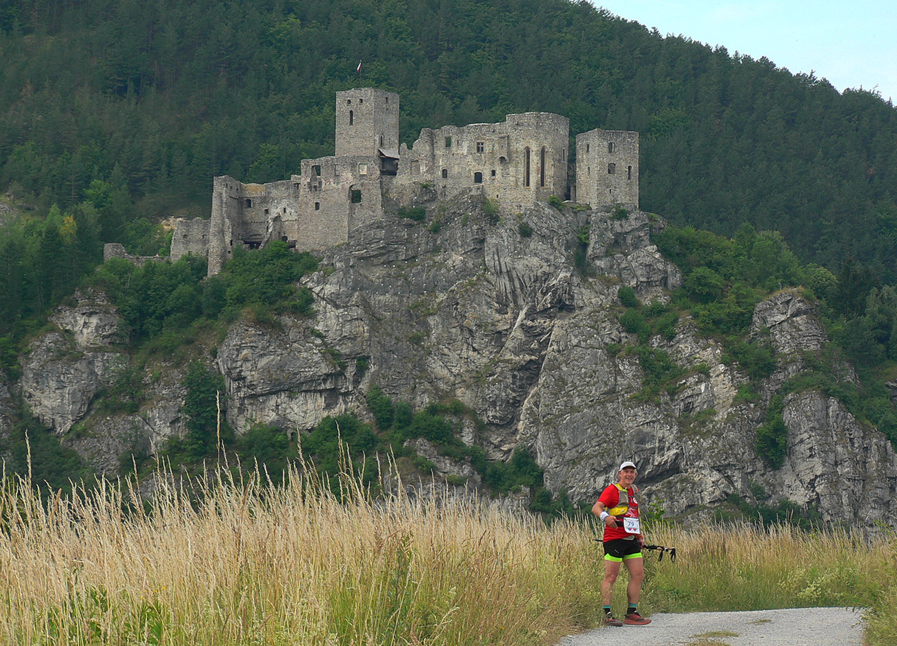 Víťaz posledných dvoch ročníkov a držiteľ mimozemského rekordu trate Patrik Milata tento rok nepriletel, ale dav vyletel spod brány, popri Váhu, aj tak poriadne rýchlo. Úvod do doliny Kúr je tu taký príjemný, vlnitý, popod horu, dobrý na rozbeh. Tam sa to pekne natiahlo, potom to ale prišlo: strmá modrá na hrebeň, do sedla Priehyb. Ani hrebeňovka cez Stratenec na Suchý nie je ktovieaká behateľná, na viacerých miestach je skôr šplhateľná. No a dlhánsky, strmý a hrboľatý zbeh pod Starhrad, na to tiež treba mať pevné a natrénované nohy. Toľko prvá polovica – z jej konca, z občerstvovačky za lávkou cez Váh, to viacerí už neboli schopní rozchodiť a odbočili namiesto do druhého kola doľava (smerom pod hrad) opačným smerom, do predčasného cieľa.