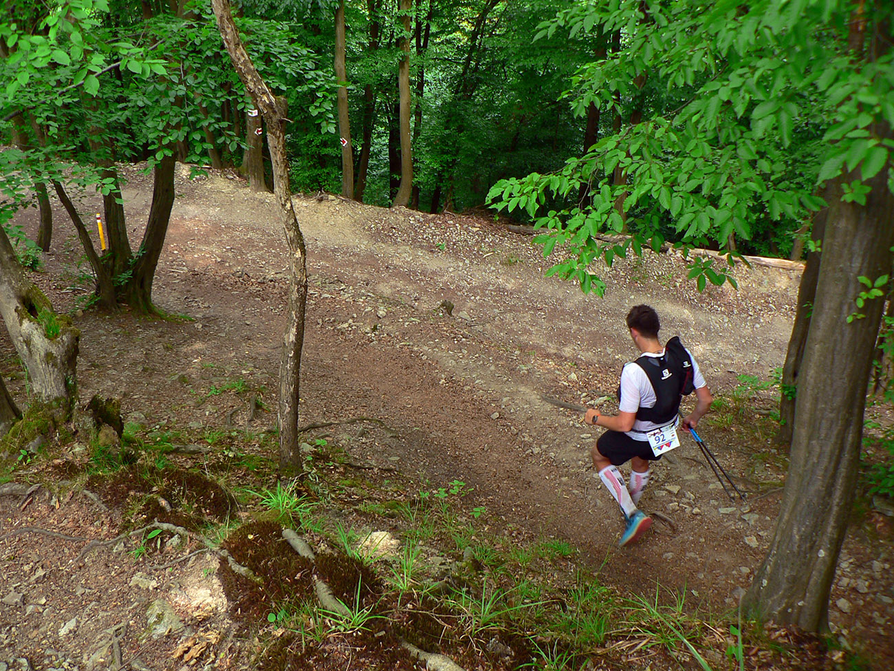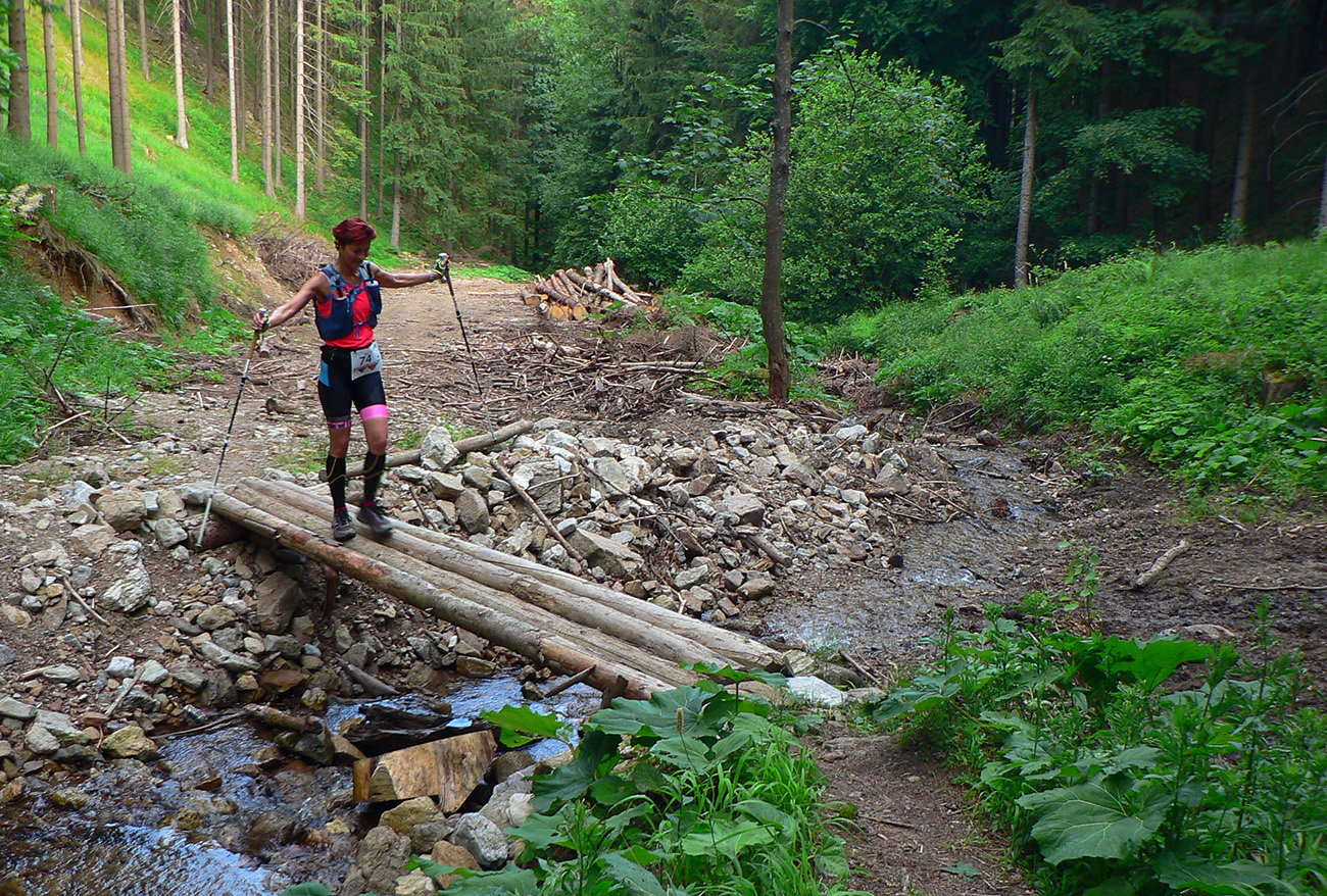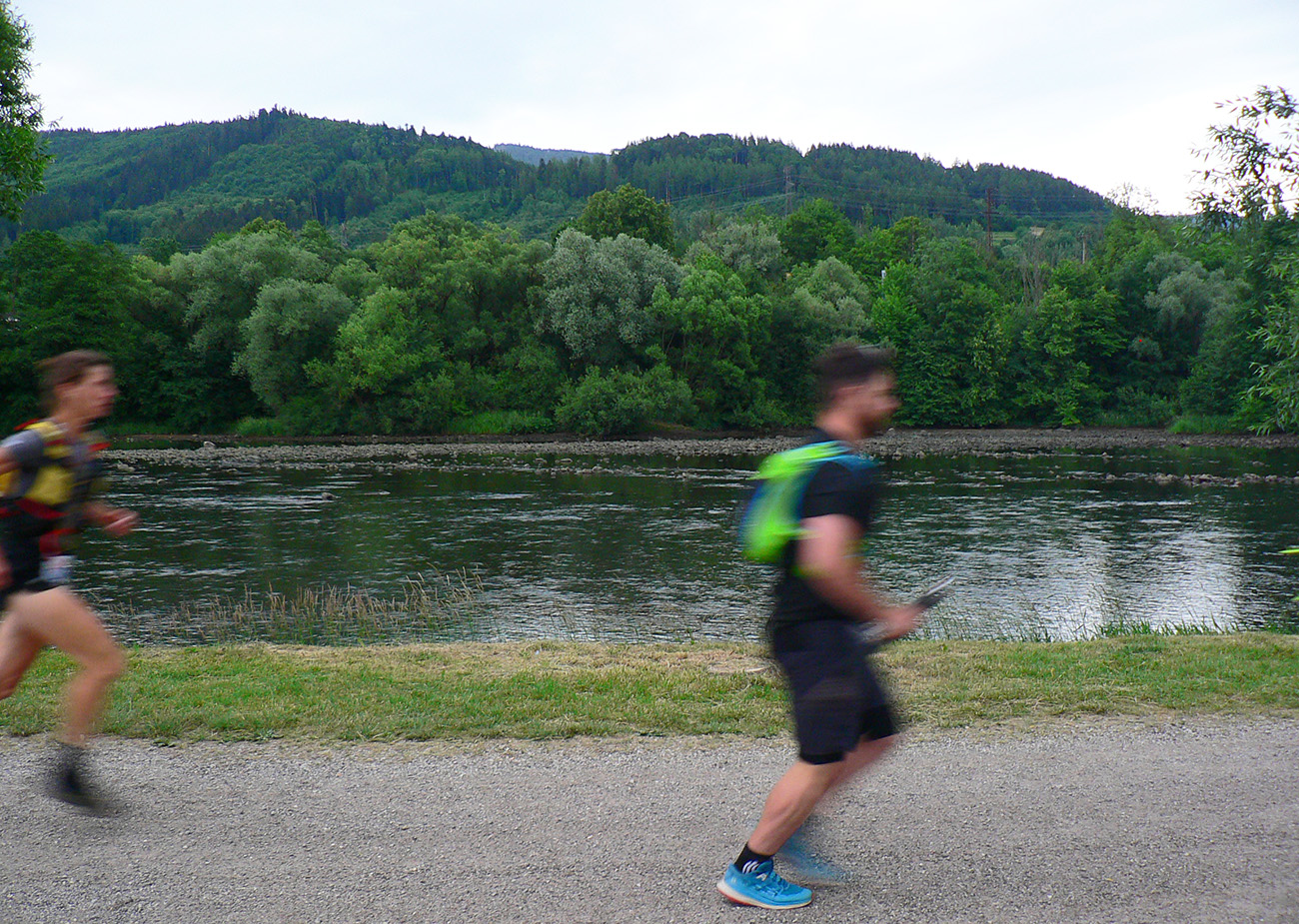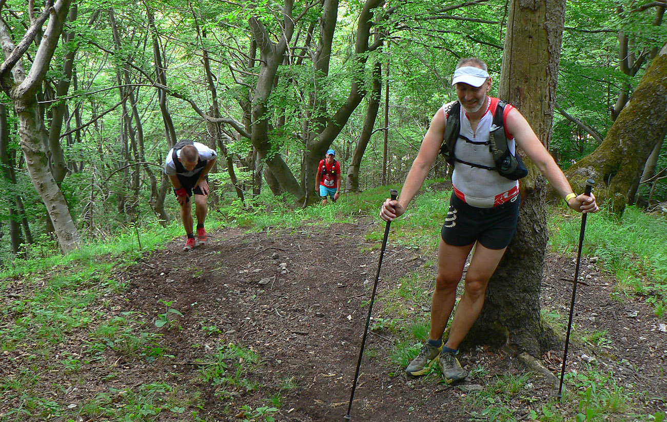 Víťaz posledných dvoch ročníkov a držiteľ mimozemského rekordu trate Patrik Milata tento rok nepriletel, ale dav vyletel spod brány, popri Váhu, aj tak poriadne rýchlo. Úvod do doliny Kúr je tu taký príjemný, vlnitý, popod horu, dobrý na rozbeh. Tam sa to pekne natiahlo, potom to ale prišlo: strmá modrá na hrebeň, do sedla Priehyb. Ani hrebeňovka cez Stratenec na Suchý nie je ktovieaká behateľná, na viacerých miestach je skôr šplhateľná. No a dlhánsky, strmý a hrboľatý zbeh pod Starhrad, na to tiež treba mať pevné a natrénované nohy. Toľko prvá polovica – z jej konca, z občerstvovačky za lávkou cez Váh, to viacerí už neboli schopní rozchodiť a odbočili namiesto do druhého kola doľava (smerom pod hrad) opačným smerom, do predčasného cieľa.