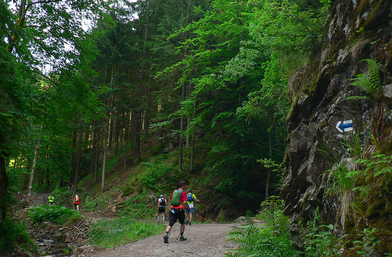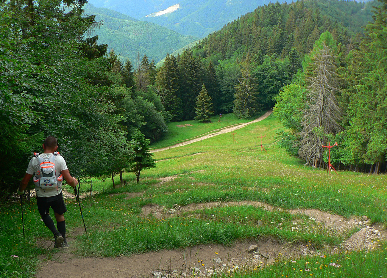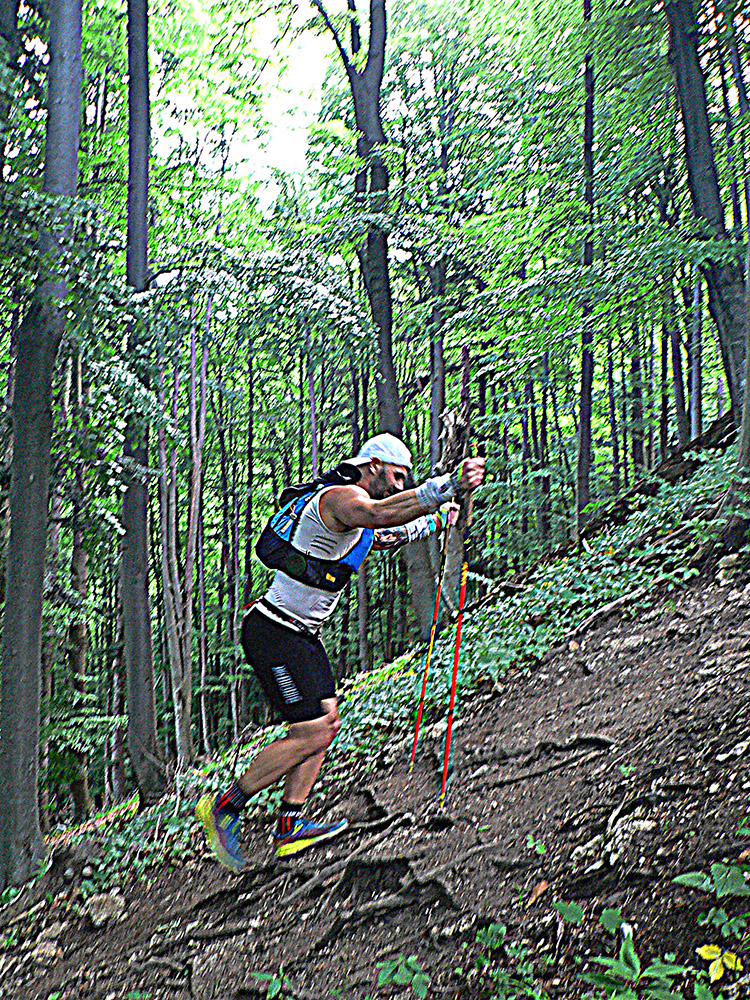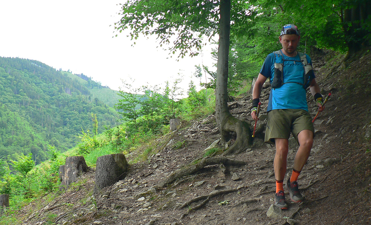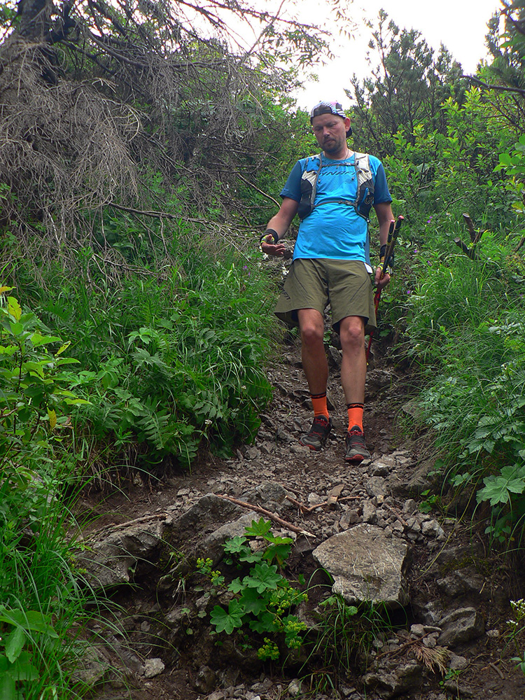 Víťaz posledných dvoch ročníkov a držiteľ mimozemského rekordu trate Patrik Milata tento rok nepriletel, ale dav vyletel spod brány, popri Váhu, aj tak poriadne rýchlo. Úvod do doliny Kúr je tu taký príjemný, vlnitý, popod horu, dobrý na rozbeh. Tam sa to pekne natiahlo, potom to ale prišlo: strmá modrá na hrebeň, do sedla Priehyb. Ani hrebeňovka cez Stratenec na Suchý nie je ktovieaká behateľná, na viacerých miestach je skôr šplhateľná. No a dlhánsky, strmý a hrboľatý zbeh pod Starhrad, na to tiež treba mať pevné a natrénované nohy. Toľko prvá polovica – z jej konca, z občerstvovačky za lávkou cez Váh, to viacerí už neboli schopní rozchodiť a odbočili namiesto do druhého kola doľava (smerom pod hrad) opačným smerom, do predčasného cieľa.