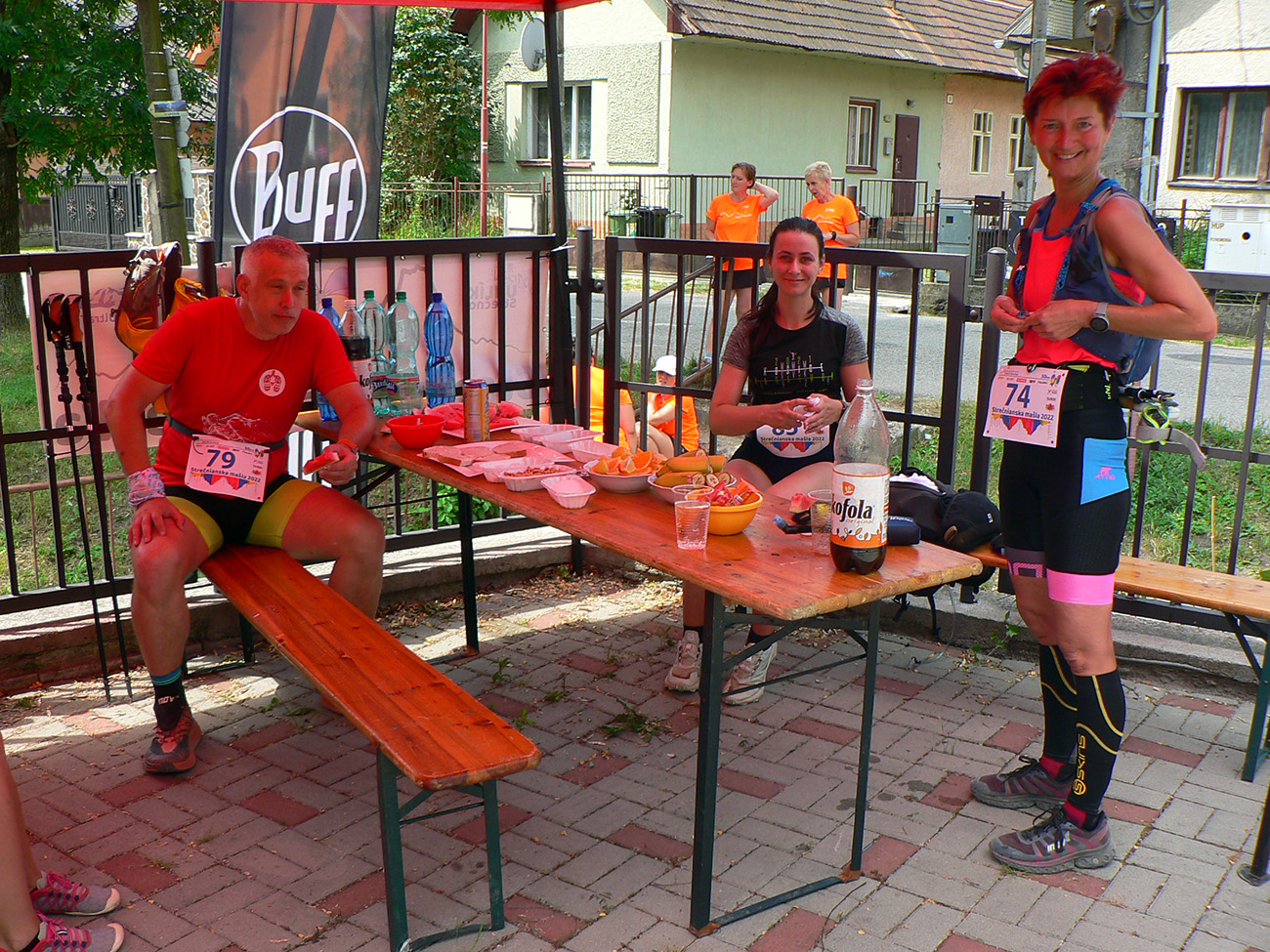 Kojšovský budzogáň ako ukazovadlo konca trápenia? Noooo, ani finálny zbeh z Kojšovej nie je sranda. Aj keď vylepšený občerstvovačkou pod rozhľadňou na Špicáku, je poriadne strmý a hrboľatý. V tomto suchu aj poriadne prašný a teda niekde aj šmykľavý. Potom ale už len prebeh Strečnom - po asfaltke, k obecnému úradu. Za ním už poza jeho budovu po šotoline do cieľa na ihrisku. Viacerí frfľali, že by sa lepšie bežalo popri Váhu - v tieni a po hlinenom chodníku, presne tade ako po štarte. Organizátori ale chceli vraj upozorniť dedinu na to, že sa tu deje niečo športovo hodnotné, hodné aspoň zatlieskania. Len si na tej ceste skôr zavadzali hore – dole sa motajúci cykloturisti, autá a teraz ešte aj bežci, mal som dojem. No uvidíme vraj o rok, čo bude – aj keď vraj z toho hlineného chodníčka už bude asfaltový cyklochodník.