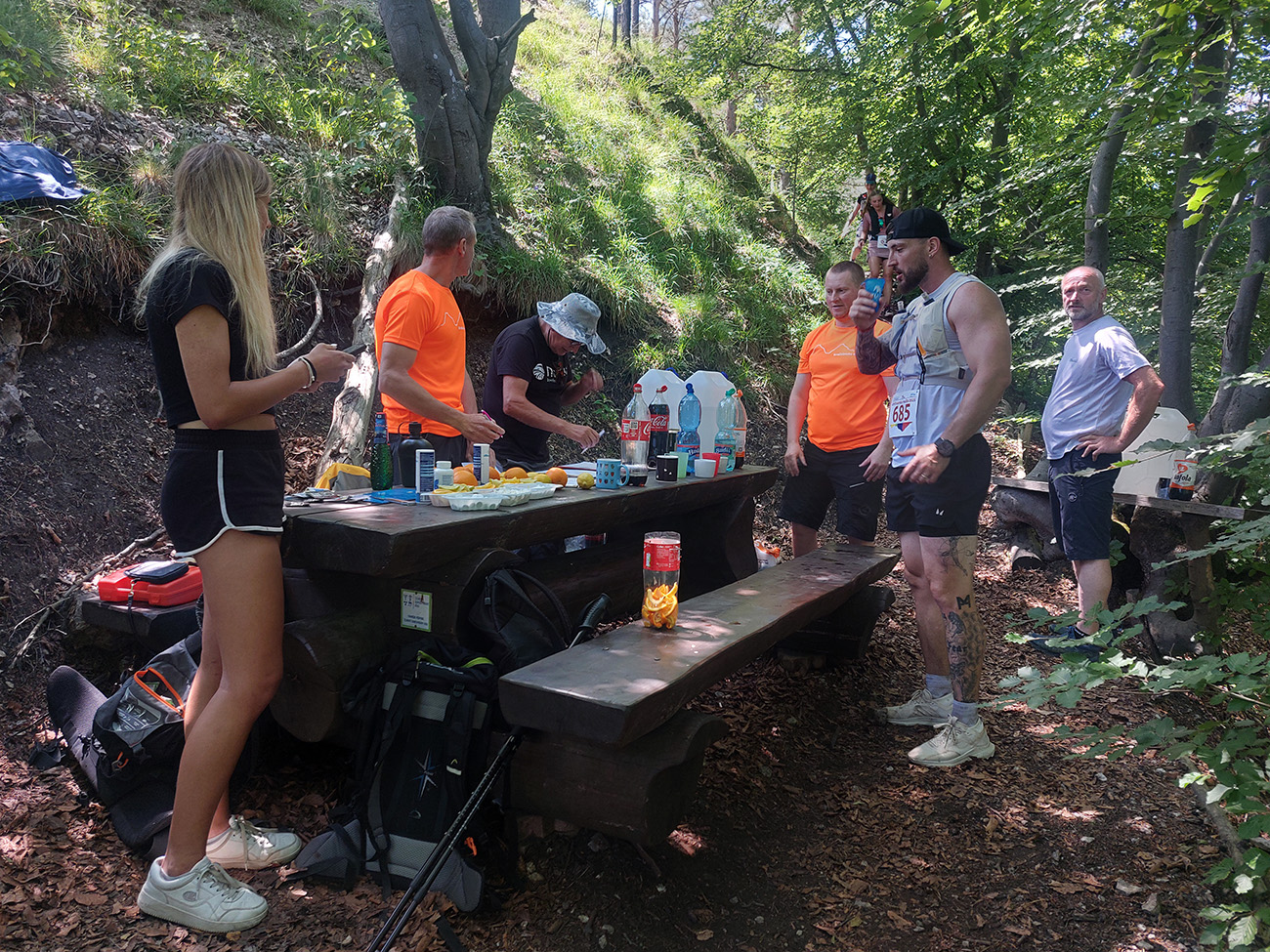 Druhý krmelec pri dele v sedle Okopy v príjemnom chládku s miernym vánkom, ale žiadne rozmaznávanie! Lebo nasledovalo len krátke prehupnutie cez vrchol Minčola, a nevyhnutnou rozhľadovou a selfíčkovou zastávkou pri dvojkríži, a nástup do brutálneho a dlhánskeho zbehu.