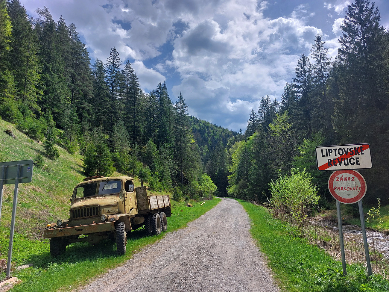 Serpentíny parádne, skaly popri nich bombastické, lesy naokolo zachovalé, výhľady takmer žiadne. Iba jeden priehľad pomedzi stromy k Čiernemu kameň, ale aj k tomu sa treba zohnúť. Len na mnohých miestach je tá šotolina pod kolesami akási až moc „kyprá“. Asi ako po zime. Metricky ale len nejakých päť kilákov a druhý, teda Veľký Šturec, vybavený tiež:
