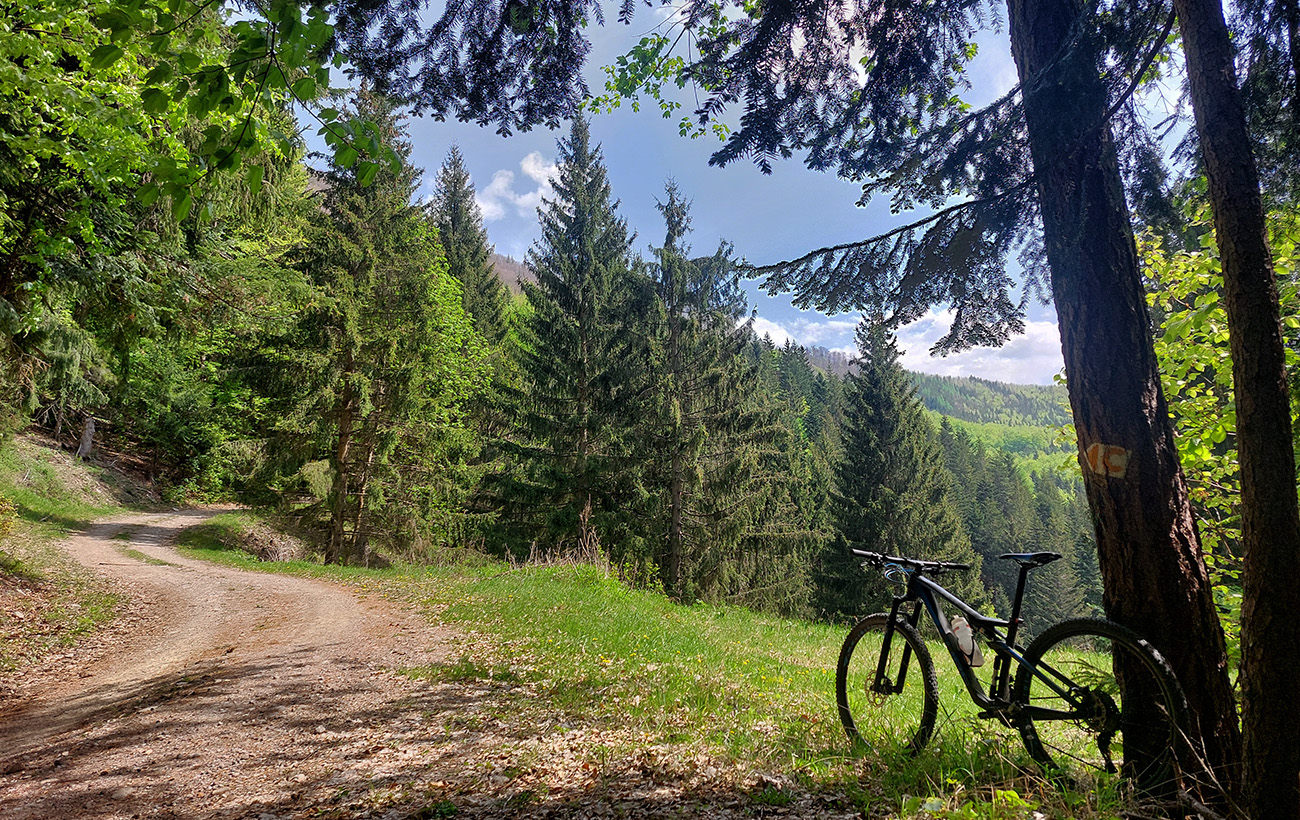 Traverz do Prašnického sedla a zjazd dole do Suchej doliny (asi šesť kilákov) už za odmenu boli – krásna, hladká šotolina, príjemne praskajúca pod kolesami. Okolo svieže jarné lesy, čistá rozkoš. Len krátky úsek pred Prašnickým sedlom prekvapil prehadzovačku, ako sa strmo dvihol z dlhého a mierneho klesania.