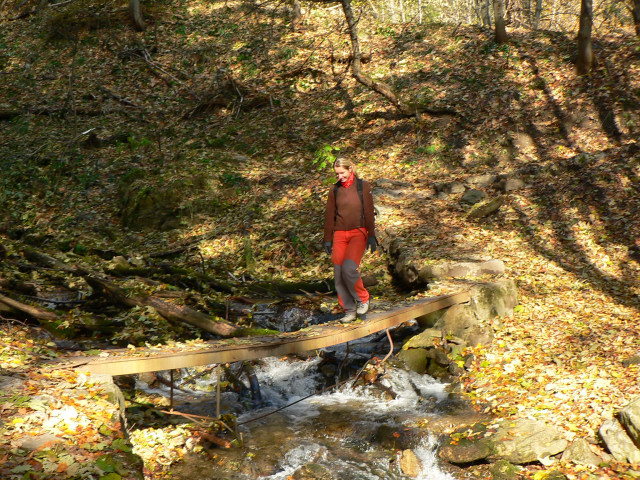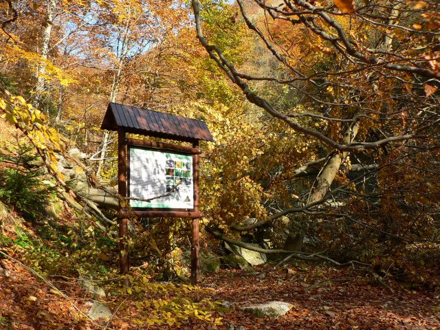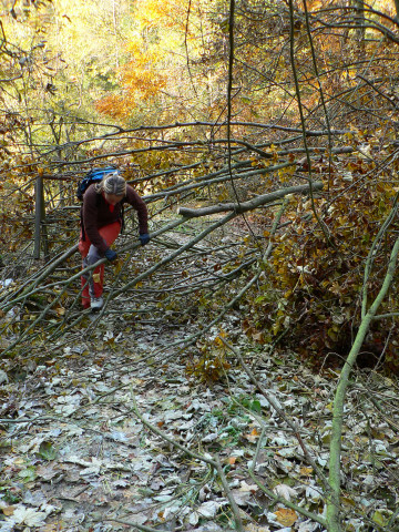 A tak sme preliezali, predierali sa, obchádzali a oddychovali zároveň. Odmenou nám bol pohľad na krásny a výdatný vodopád v jesenných farbách. Stromy putovanie za vodopádom cestu trochu spomalia, ale inak sa dá prejsť bez väčších problémov. Zaujímavé je, že všetky stromy čo popadali, padli uvedomele a nezasiahli ani jednu z náučných tabúľ na chodníku. Ja dúfam, že si ich prečíta ešte hodne ľudí, lebo dolina je naozaj pekná na prechádzku v každom ročnom období.