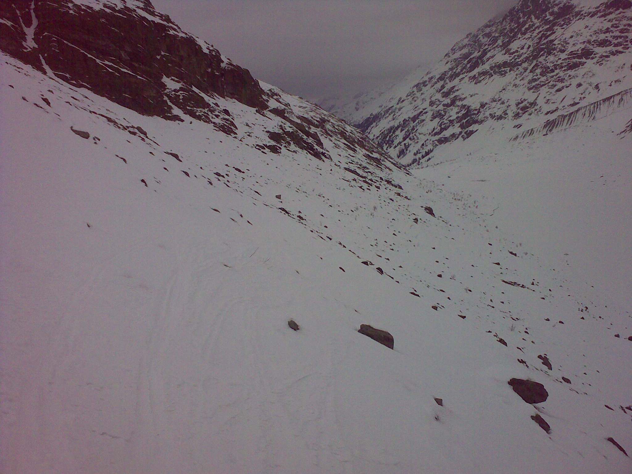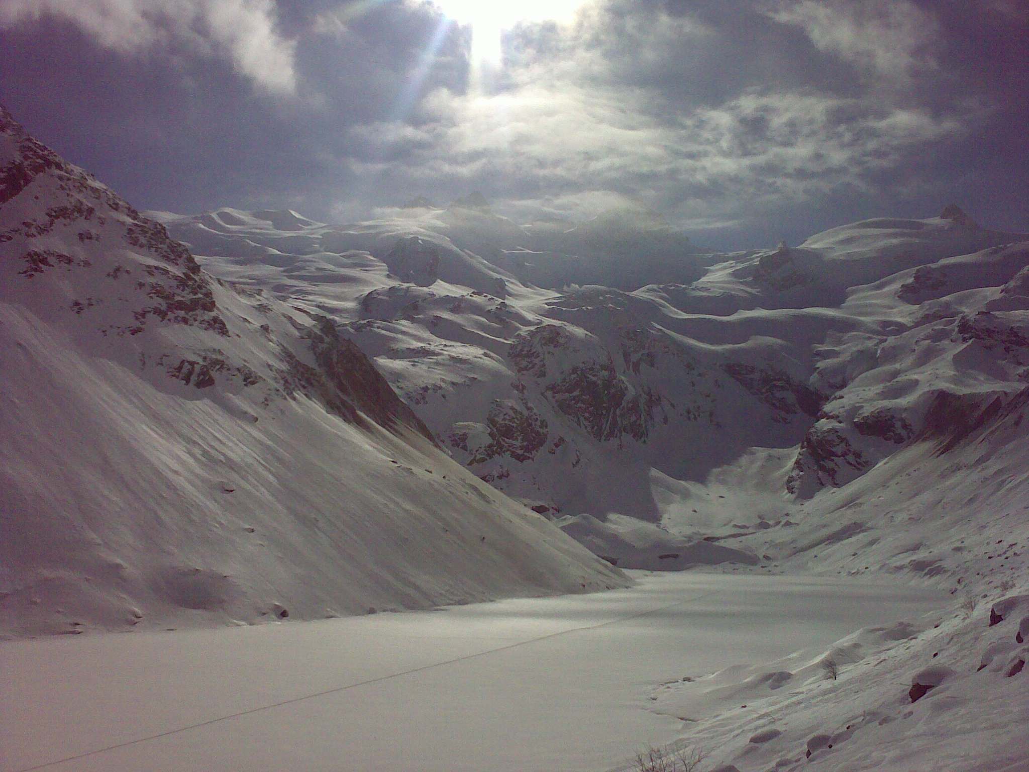 Coaz Hütte je až do marca zavretá a je sprístupnený iba Winterraum, ktorý sa mi zdal viac ako luxusne zariadený... pec, riad, ustlané postele s navlečenými perinami. Len drevo si treba priniesť z pod chaty, kde je prístup dosť zafúkaný. Nakoľko sa počasie začalo rapídne meniť, zvolil som tú istú cestu späť . Prašan bol bez zmeny, ale jarný firn už totálne primrznutý. V spodnej časti, pri zjazde k jazeru, treba dávať pozor na veľké kamene pod snehom!!! Načasovanie tejto túry bolo ideálne, lebo ešte v ten večer začalo snežiť... A sneží už dva dni. Uvidíme, čo nám to prinesie...
