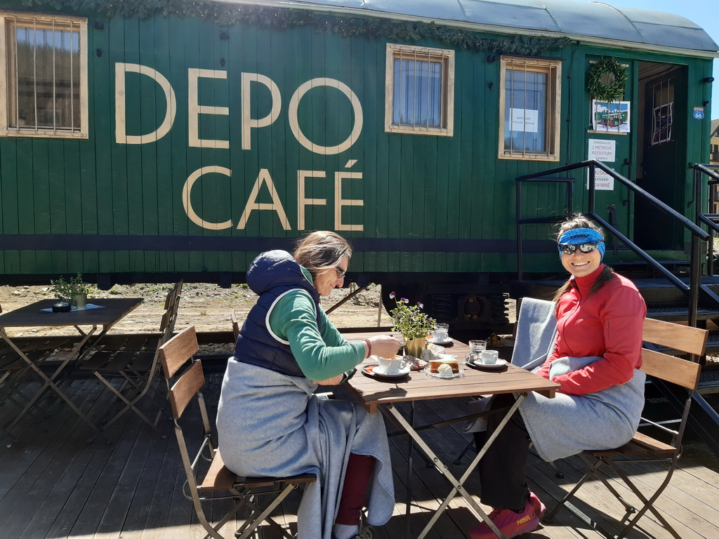 Tak sme sa vybrali to omrknúť. Pred Telgártom v smere z Popradu stojí ďalšia novinka: Depo café. To sme tiež nemohli obísť. Výborné to bolo a mať možnosť takto sa naštartovať kávou a koláčom pred túrou to veru nie je v týchto končinách úplná samozrejmosť.