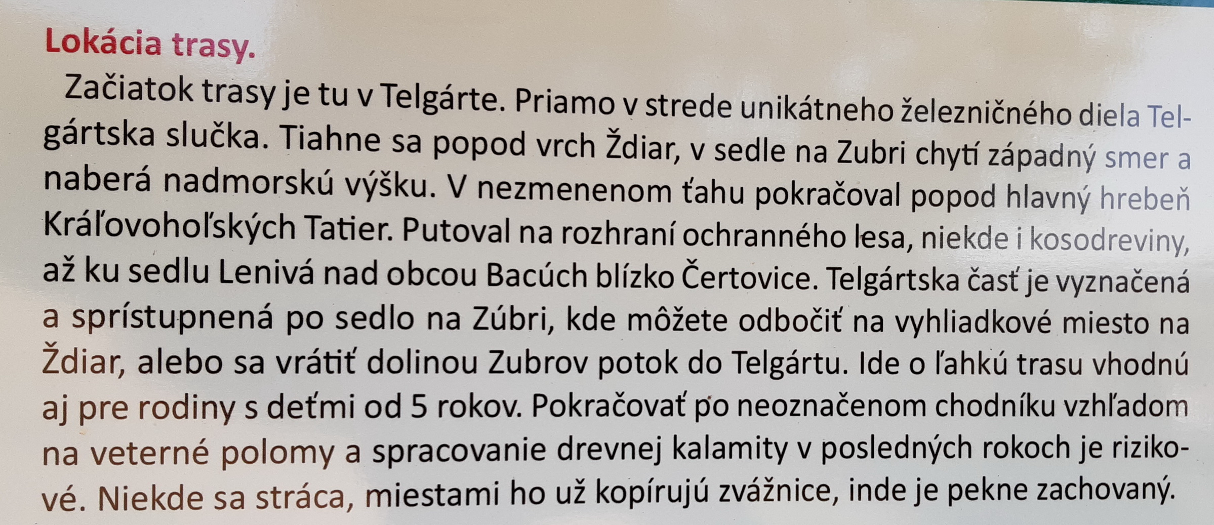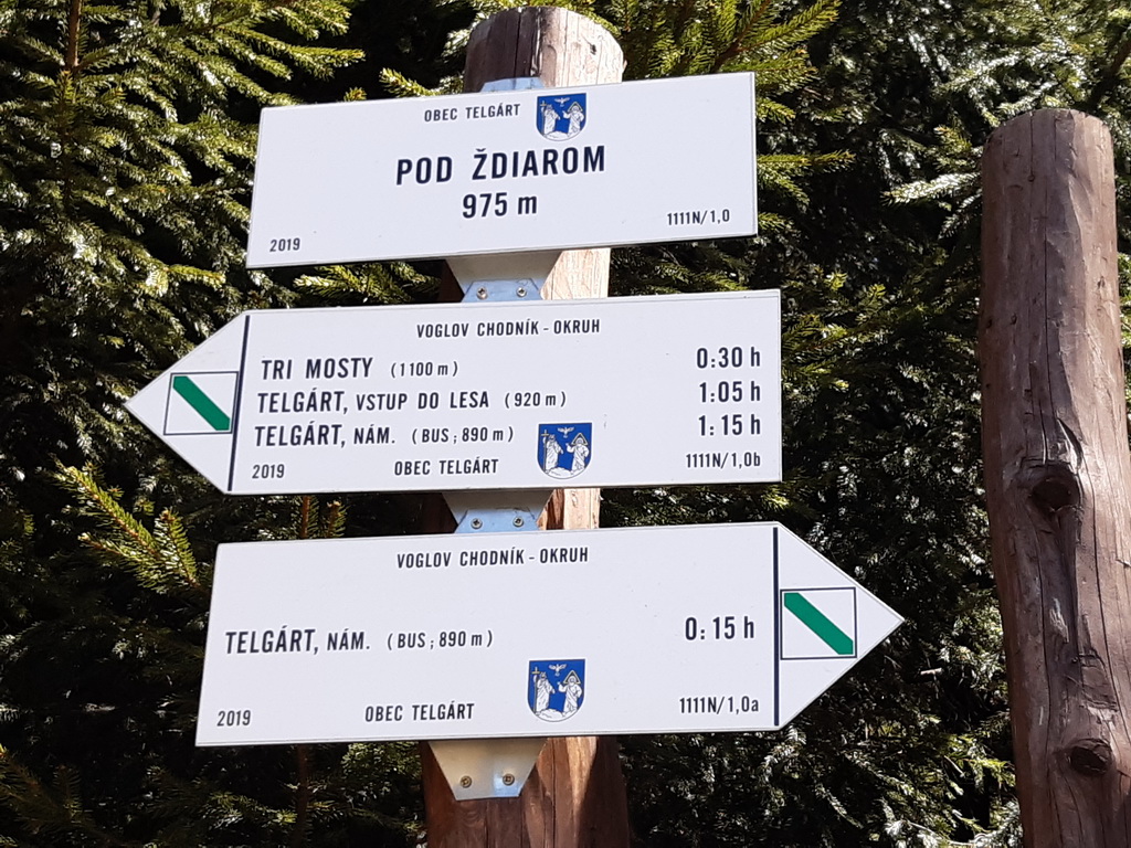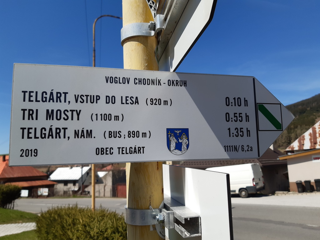 V centre Telgártu sme na smerovníku síce objavili tabuľku so značkou a názvom Voglov chodník, ale info ktorou z dvoch možností je lepšie sa vybrať tam už nebolo. My sme našťastie mali aj túto informáciu a tak sme zamierili najprv na samotný chodník. Nová náučná značka je totiž zokruhovaná a návrat v tomto prípade bude viesť po štrkovej zvážnici dolinou riečky Zubrice.