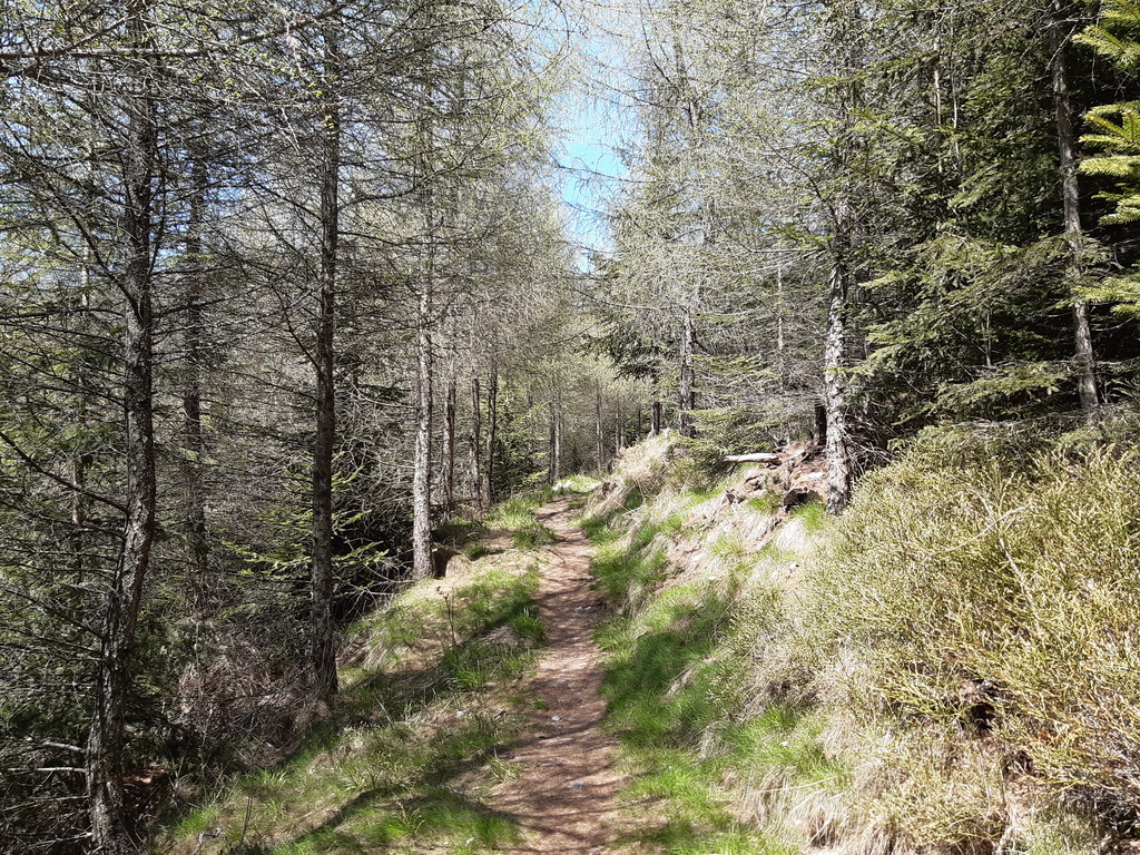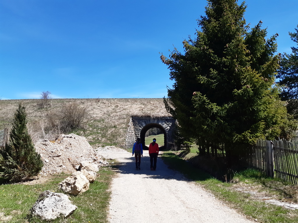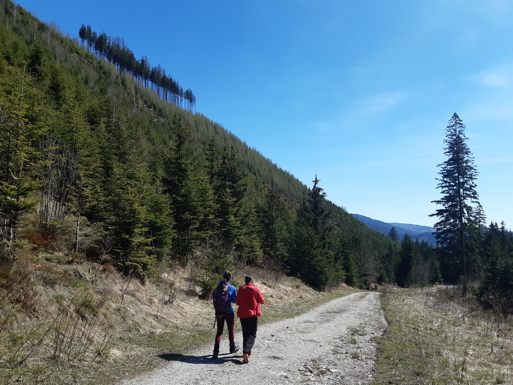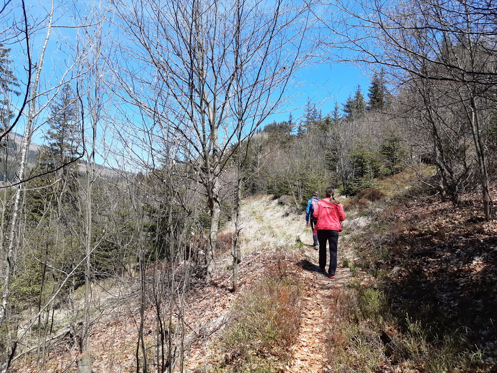 Prechádzame podchodom popod železnicu a po štrkovej ceste sme zakrátko pri lese, malý starý kameňolom a už začína chodníček. Samotný chodník veru prekvapil. Nádhera, výhľady, logický traverz, mierne stúpanie... tak nejak by to malo byť... A bohužiaľ nie je u drvivej väčšiny turistických chodníkov na Slovensku.
